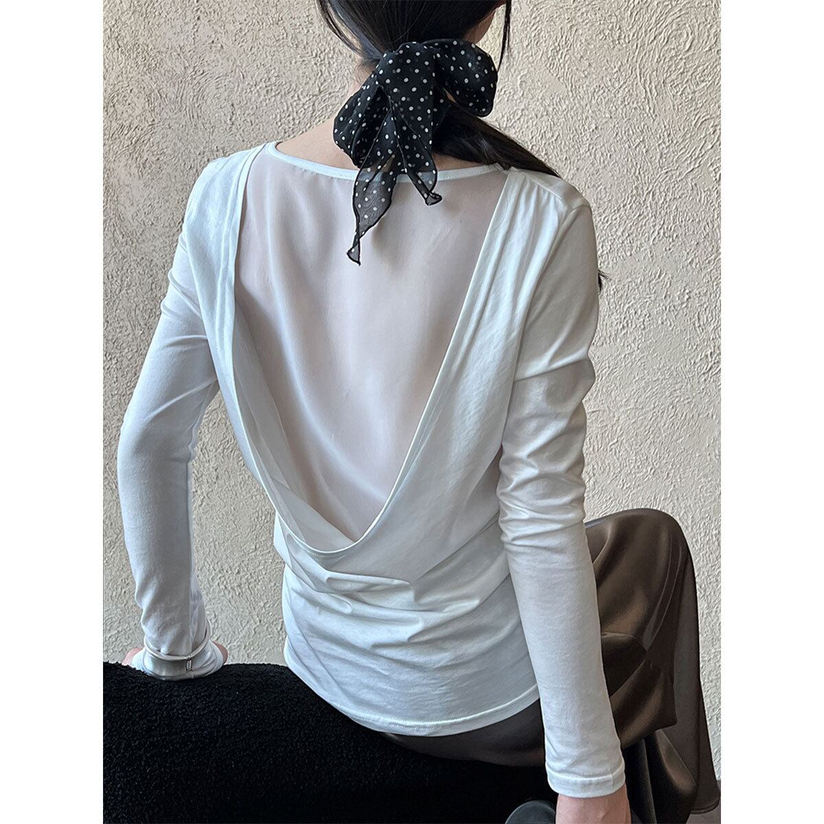 【カットソー】 長袖 薄手 シースルー トップス レディース おしゃれ カットソー 春 夏 秋 冬 tシャツ カットソー 20代 30代 40代 トップス 大人 可愛い きれいめ ホワイト 白 ライトグレー ブラック 黒
