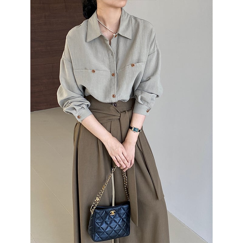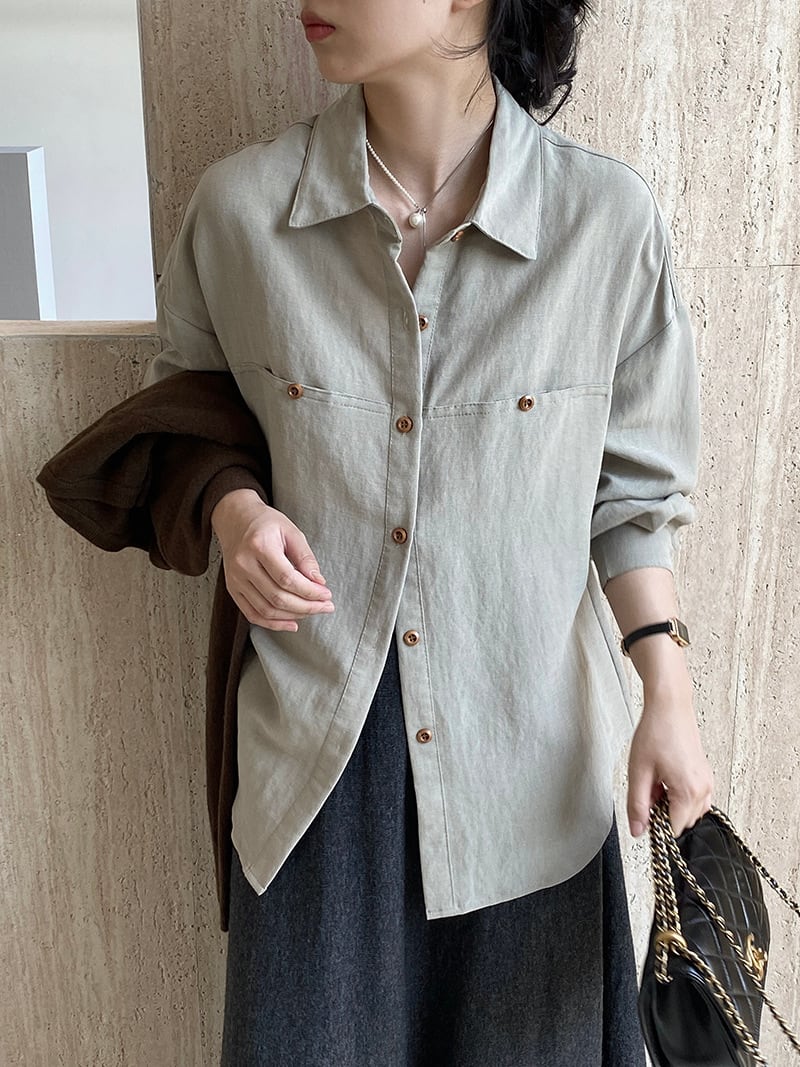 【シャツ】 シャツ レディース 大人 可愛い トップス シャツ ブラウス 韓国 ブラウス 春 秋 冬 20代 30代 40代 シンプル オフィス レディース フォーマル 体型カバー きれいめ 長袖 グリーン 緑 S M
