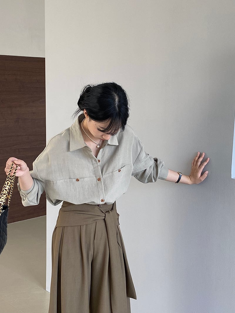 大人可愛いシックなグリーンカラーのオーバーサイズシャツ。