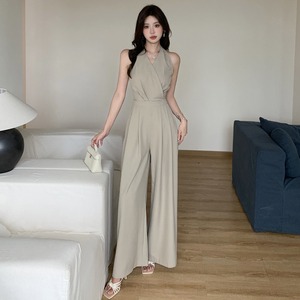 大人エレガントなホルターネックのカシュクールパンツドレス。