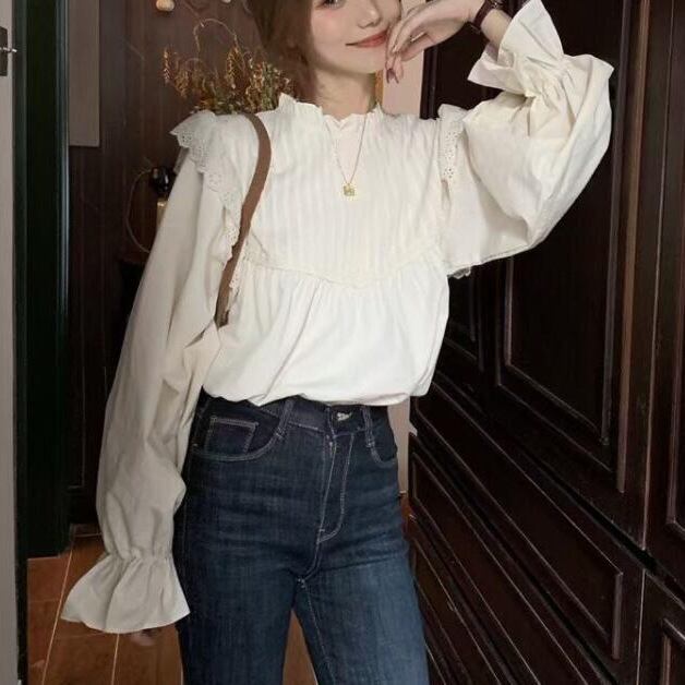【ブラウス】 ブラウス レディース 大人 可愛い トップス シャツ ブラウス 韓国 ブラウス 春 秋 冬 20代 30代 40代 シンプルオフィス レディース 長袖 フォーマル 体型カバー きれいめ ホワイト 白 S M L XL