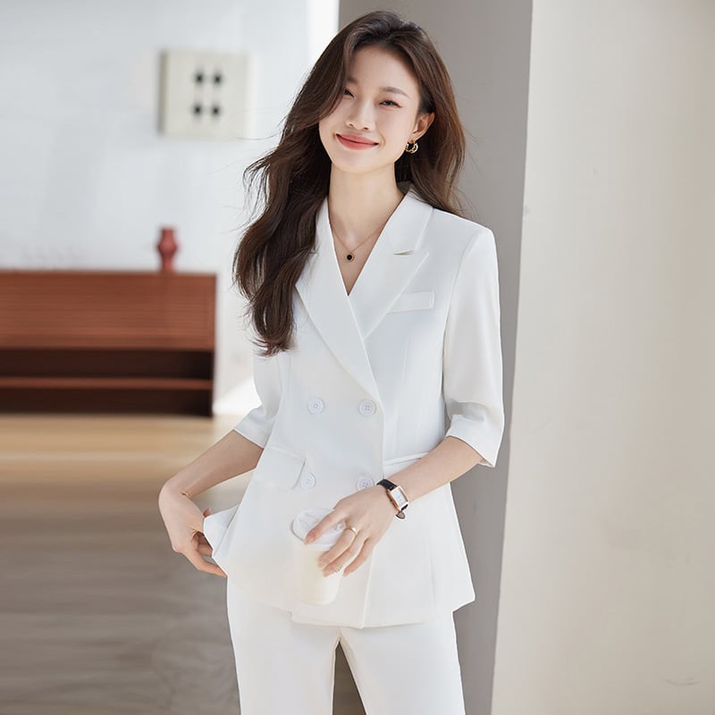 大人エレガントな七分袖ジャケット+ワイドパンツのセットアップドレス。