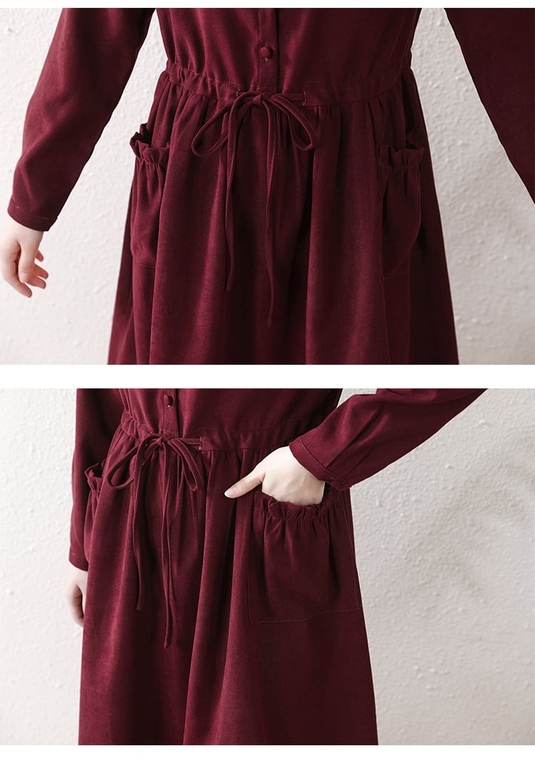 大人エレガントなコーデュロイ素材のシャツワンピース。