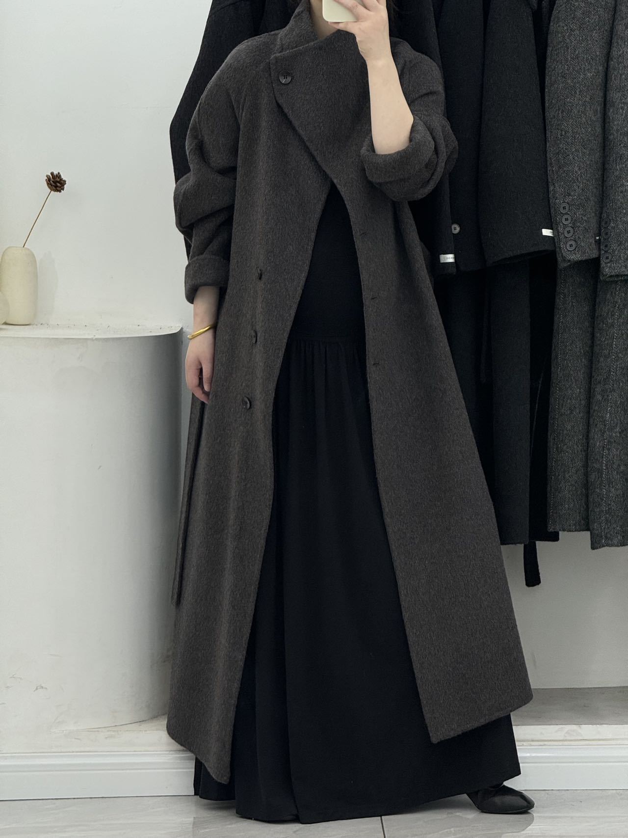 大人エレガントなマキシ丈のチェスターコート。