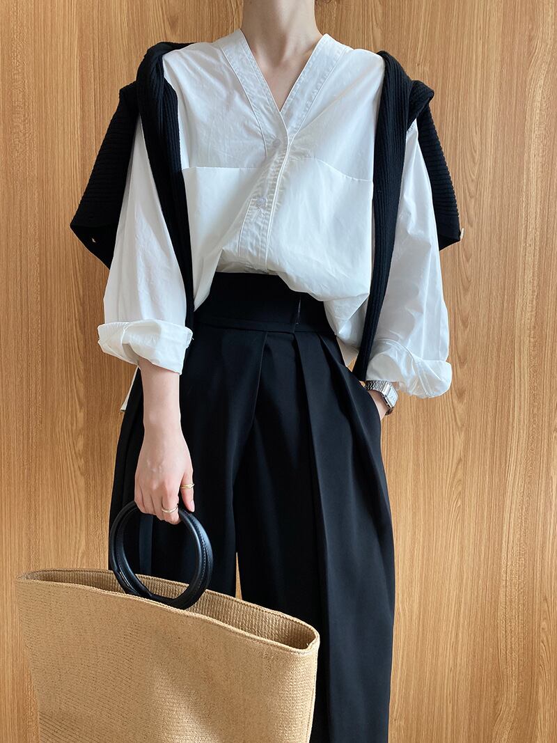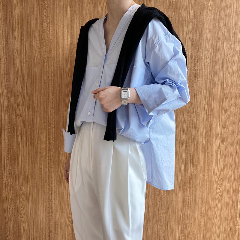 【シャツ】 シャツ レディース 大人 可愛い トップス シャツ ブラウス 韓国 ブラウス 春 秋 冬 20代 30代 40代 シンプル オフィス レディース フォーマル 体型カバー きれいめ 長袖 ネイビー 青 ホワイト 白