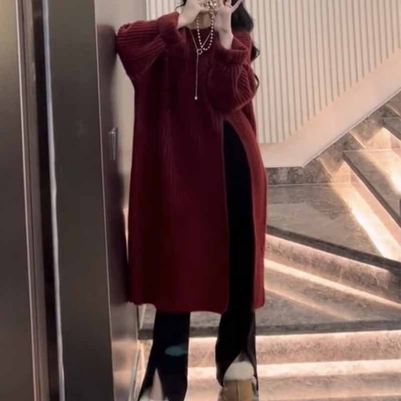 大人エレガントなロング丈のニットセーター。