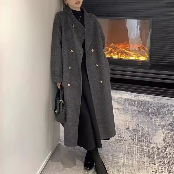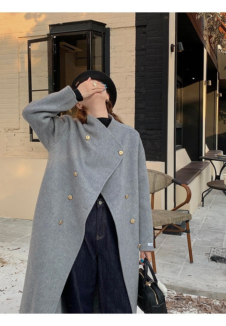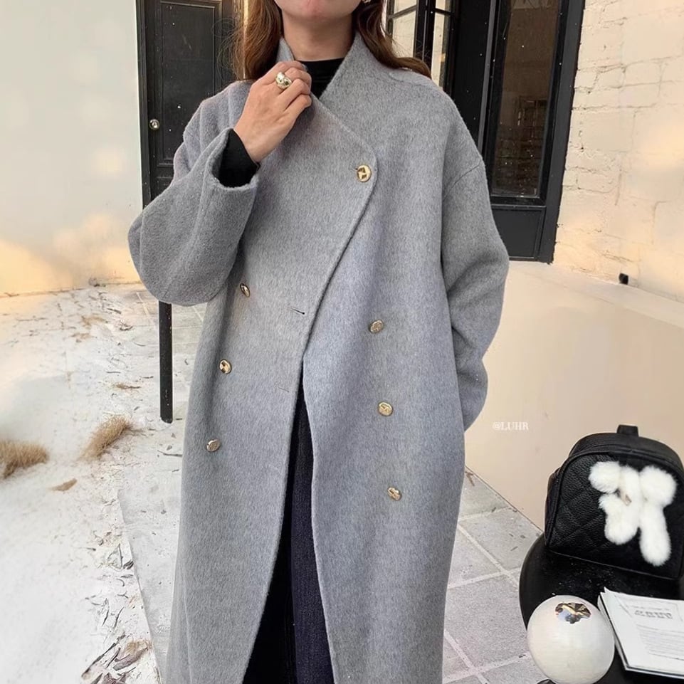 大人エレガントなノーカラーのチェスターコート。