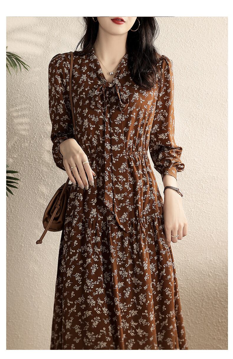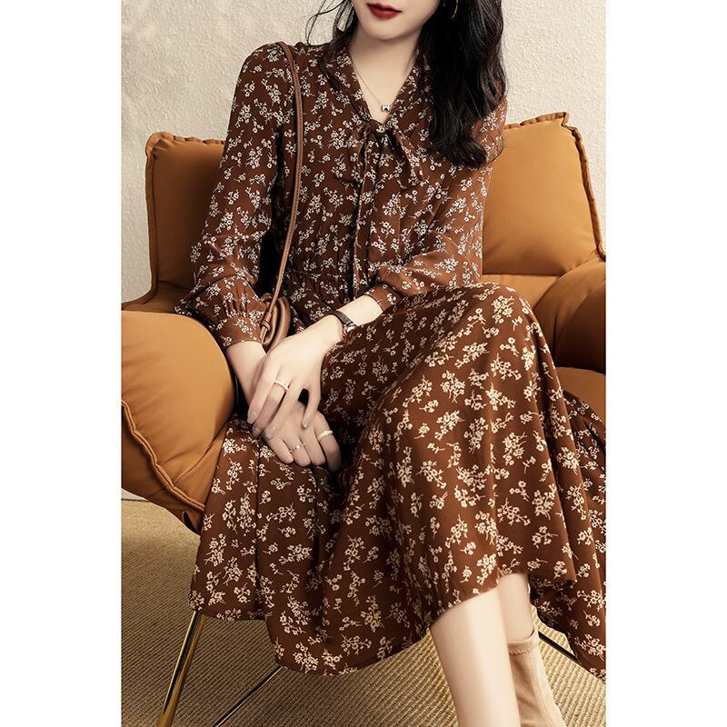 大人エレガントなシフォン素材の花柄ミディ丈ワンピース。