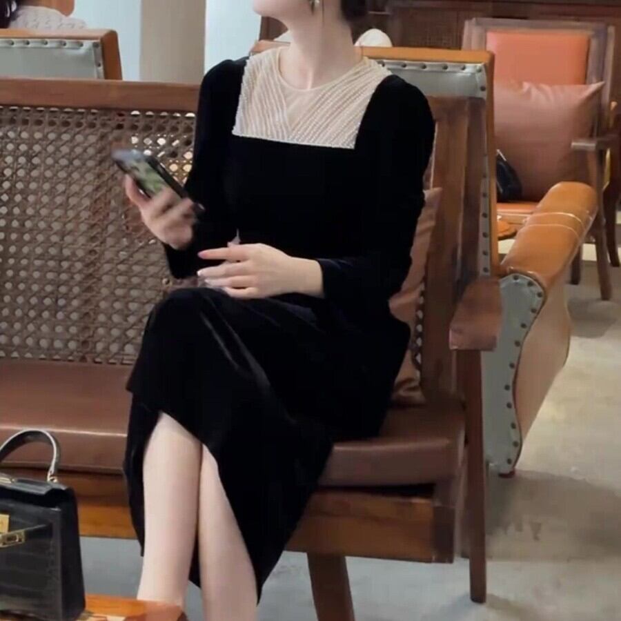 【パーティードレス】 パーティードレス 結婚式 お呼ばれ ドレス 結婚式のお呼ばれ お呼ばれ ワンピース ロング ワンピース 20代 30代 40代 卒業式 謝恩会 成人式 同窓会 食事会 婚活 フォーマルドレス 袖あり ロング 体型カバー お呼ばれ 二次会 フォーマルワンピース シンプル かっこいい おしゃれ ブラック 黒 S M L XL