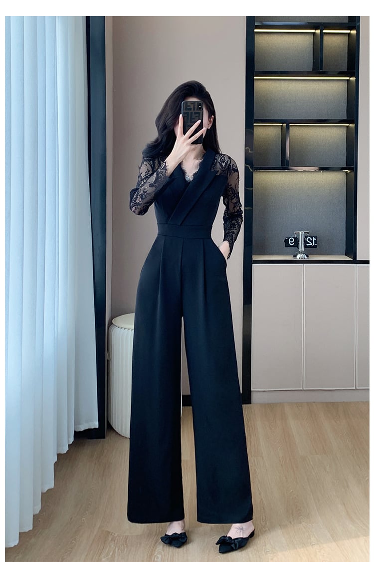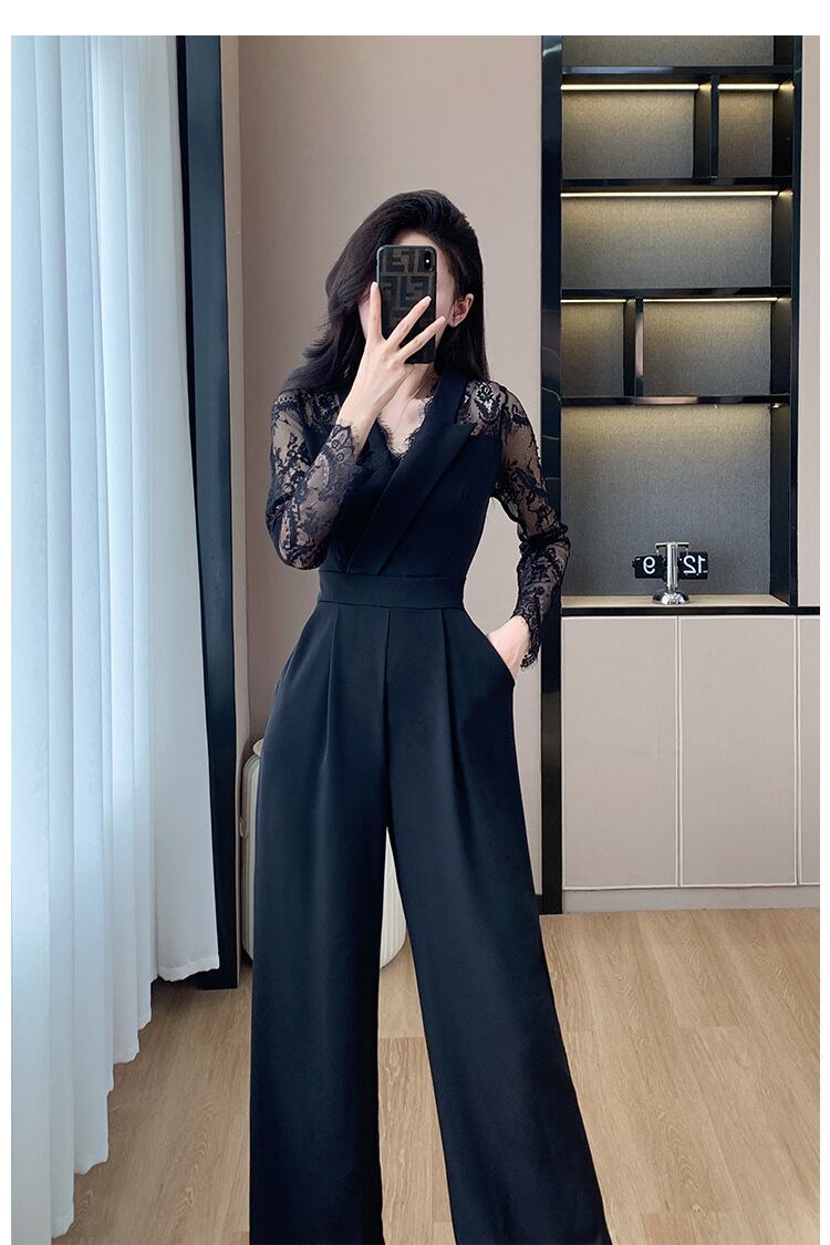 お袖の透け感あるレースがエレガントなパンツドレス。