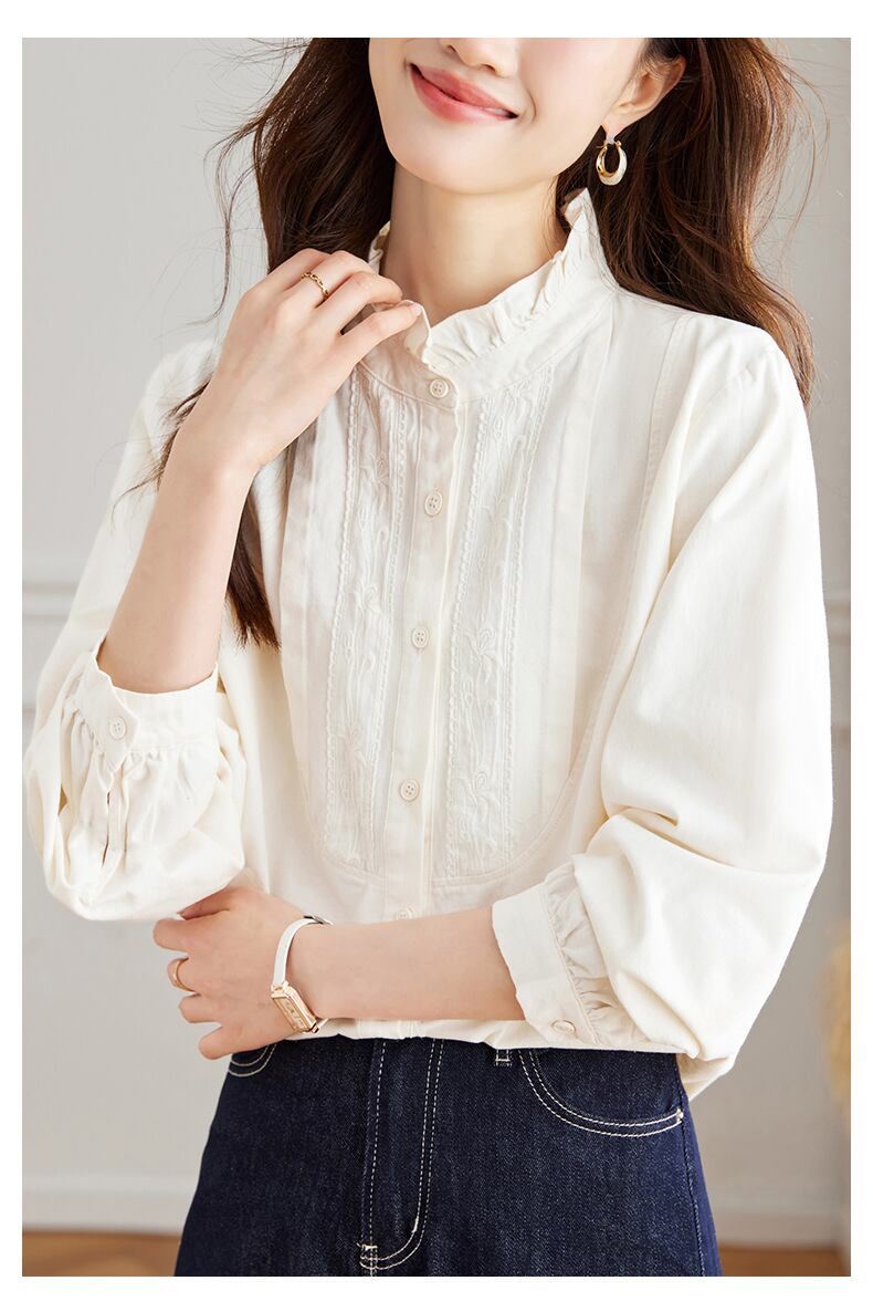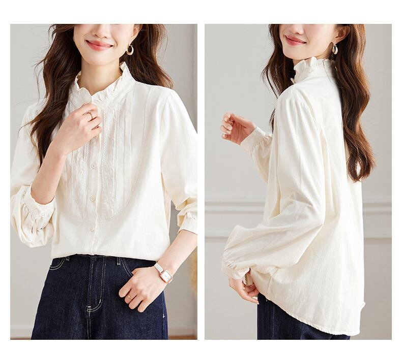 大人エレガントなフリルカラーのシンプルなブラウス。
