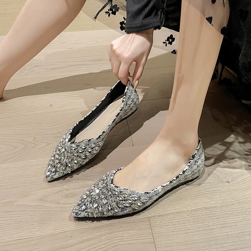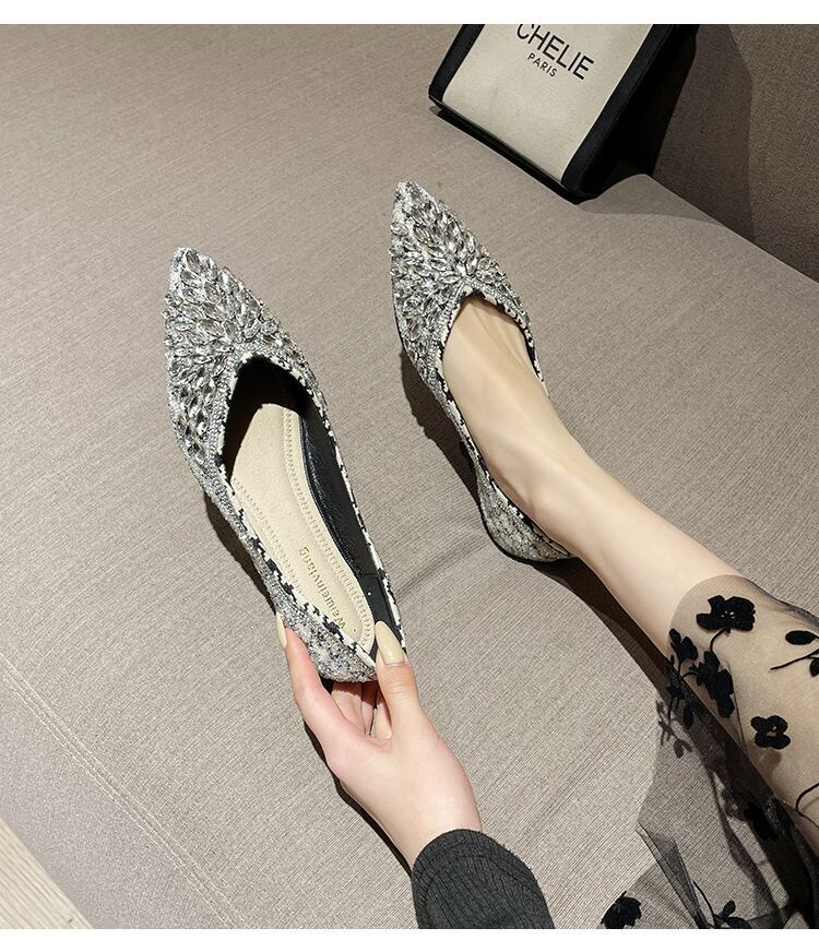 大人可愛いポインテッドトゥのローヒールパンプス。