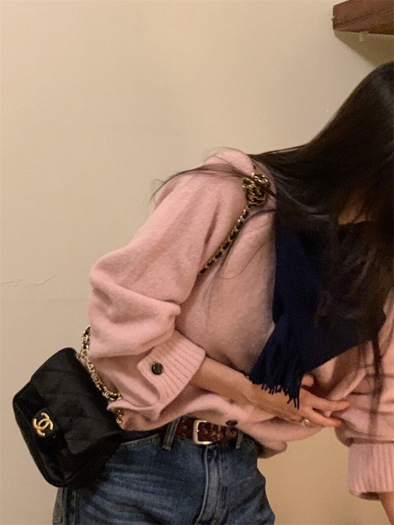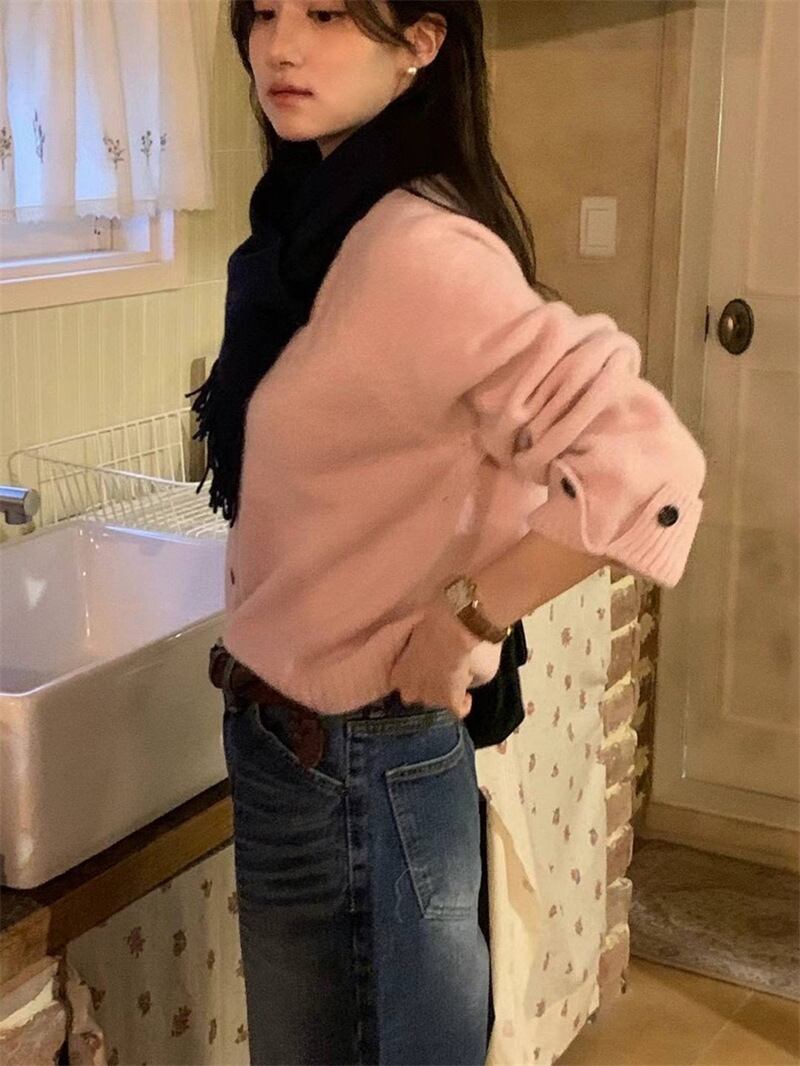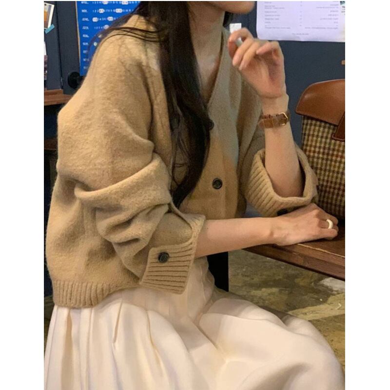 お袖の折り返しとボタン使いが大人可愛いニットカーディガン。