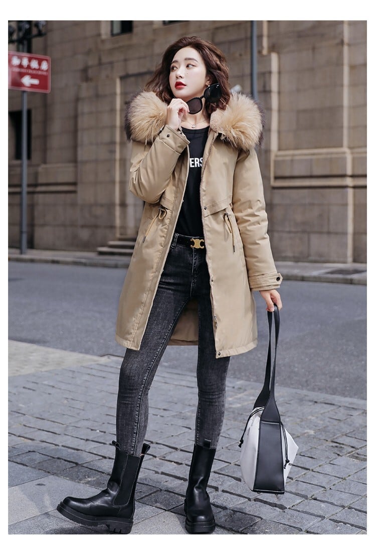 ふわふわのファー付きでお首まわりまで防寒高くあたたかい。