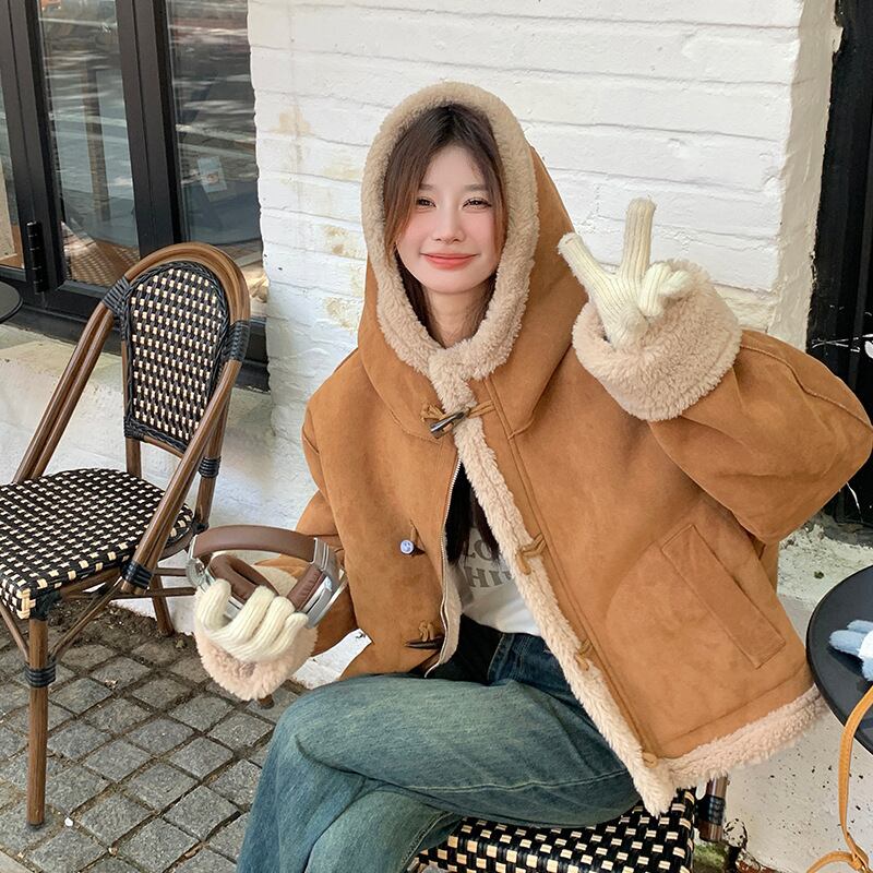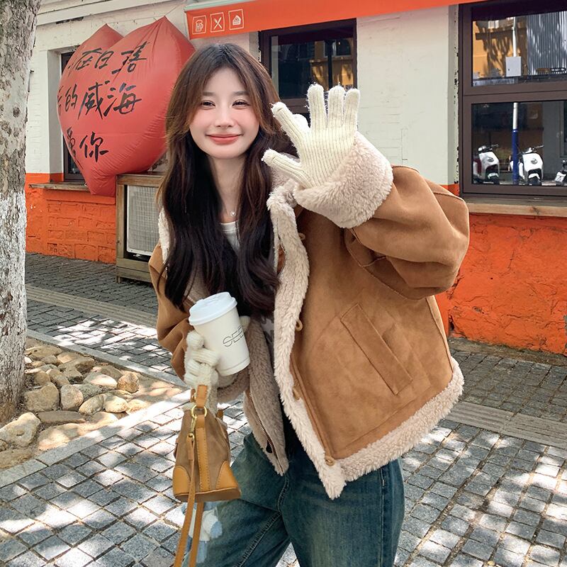 【コート】 ムートンコート レディース きれいめ アウター キャメル ショート 秋 冬 20代 30代 40代 可愛い 韓国 ファーコート カジュアル 茶色 S M L XL