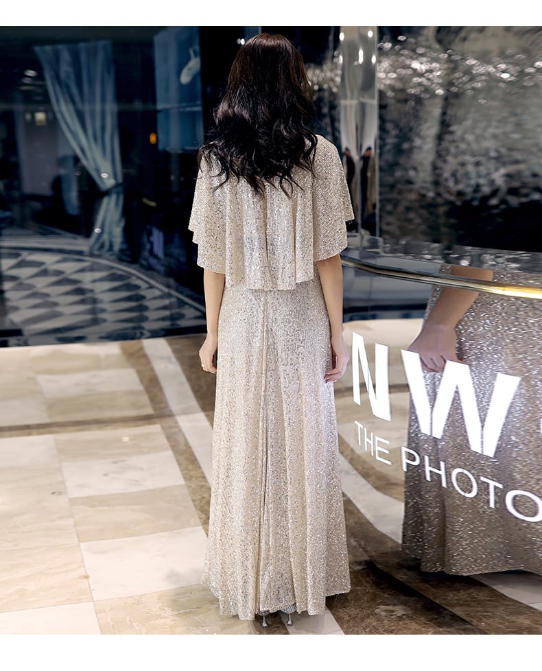 全身のきらきらスパンコールがエレガントなパーティードレス。