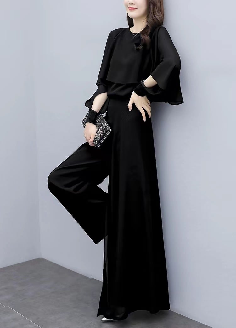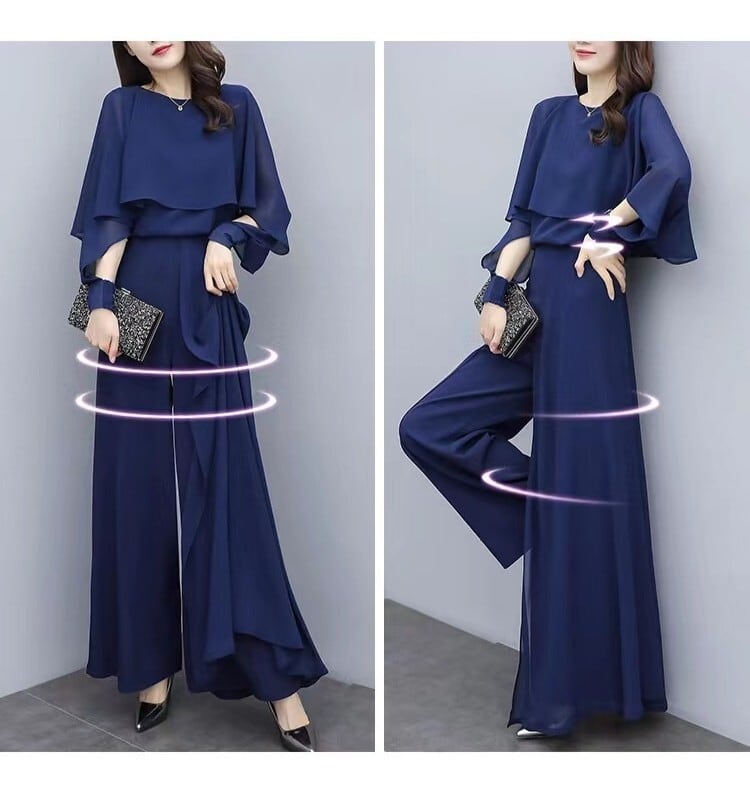 シフォン素材で手触りもなめらか歩くたびにワイドパンツが優雅に揺れる。