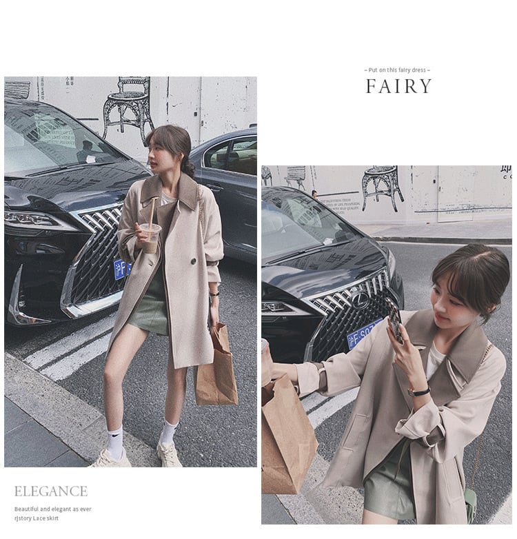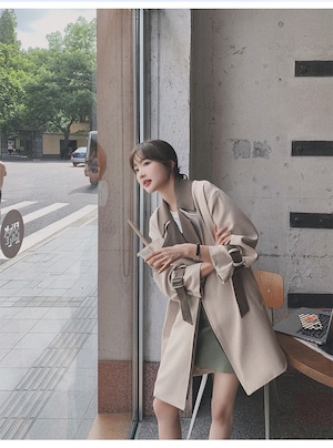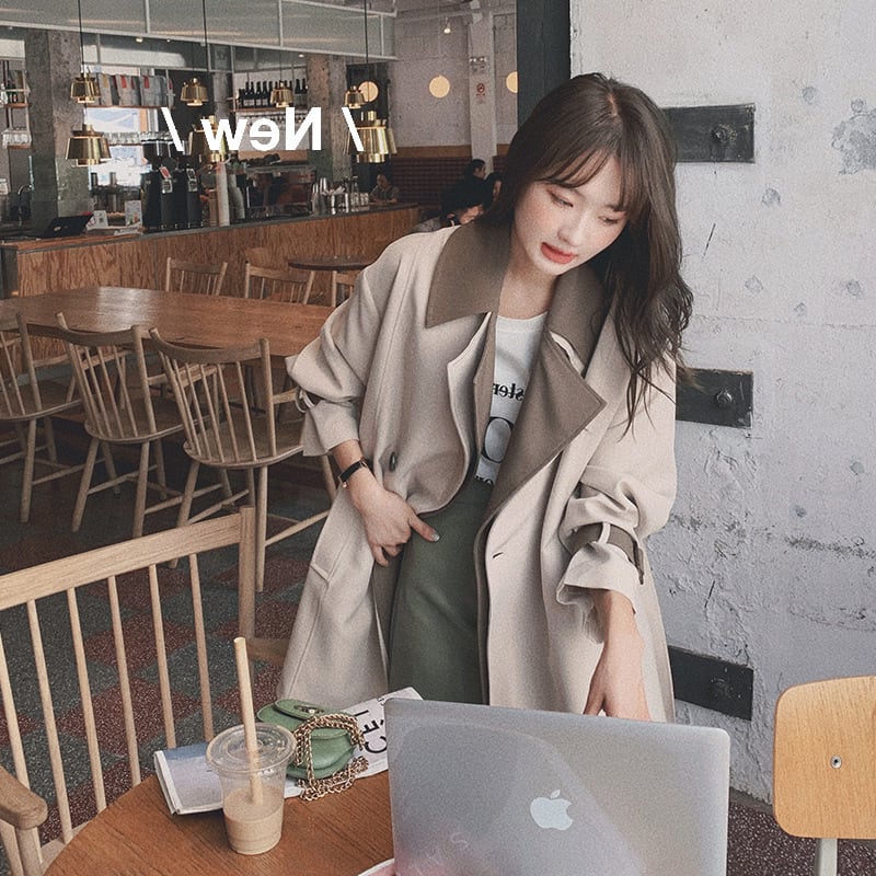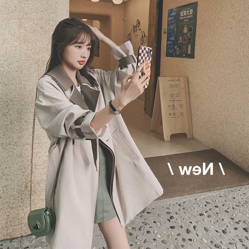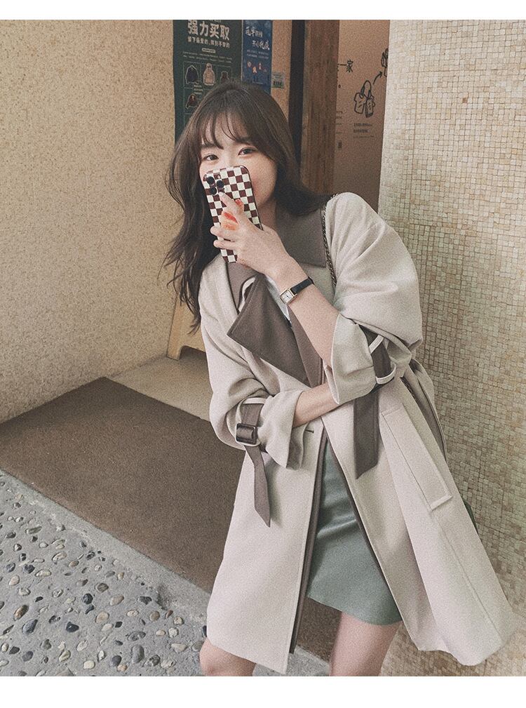 大人可愛いダブルカラーのバイカラートレンチコート。