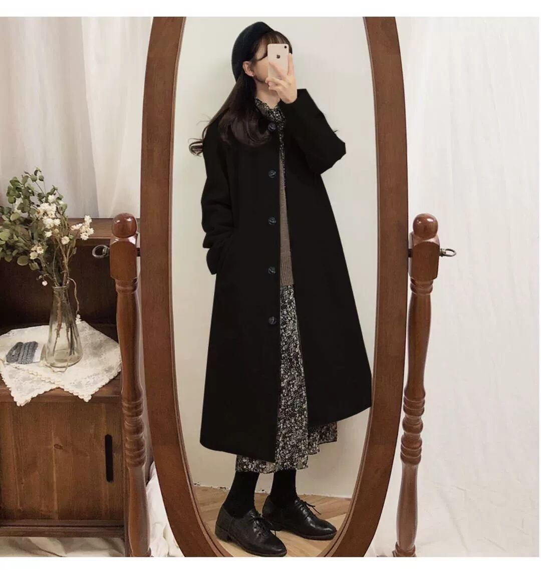 大人可愛いロング丈のシンプルなステンカラーコート。
