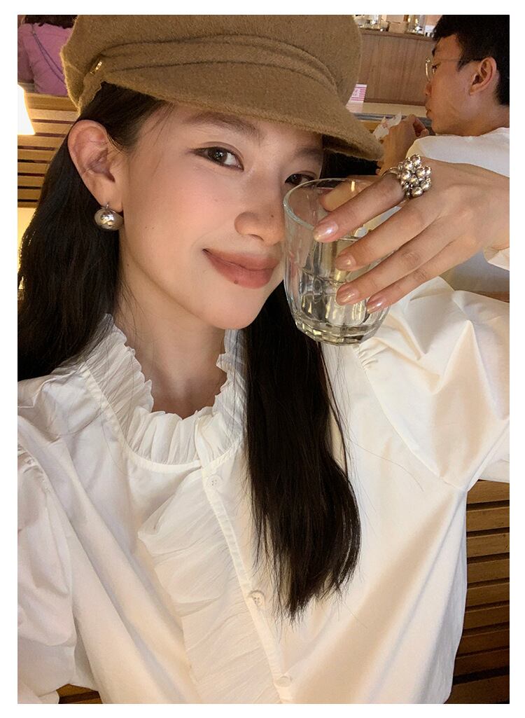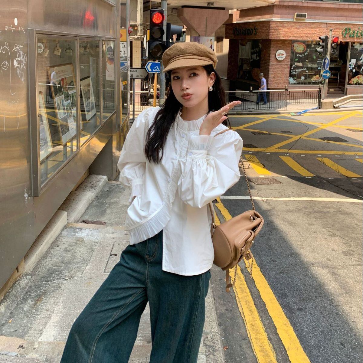 【ブラウス】 ブラウス レディース 大人 可愛い フリル トップス シャツ ブラウス 韓国 ブラウス 秋 冬 20代 30代 40代 シンプルオフィス レディース 長袖 フォーマル 体型カバー きれいめ ホワイト 白 S M