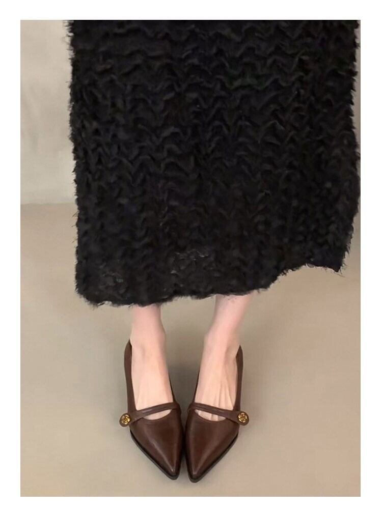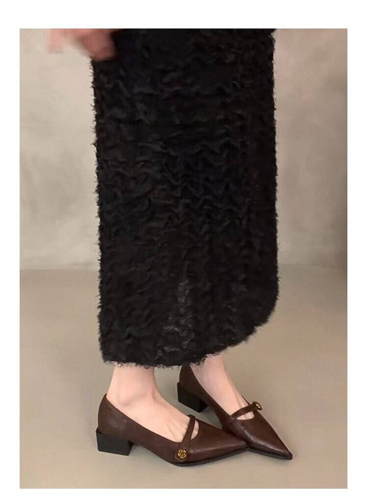 大人可愛いポインテッドトゥのローヒールパンプス。