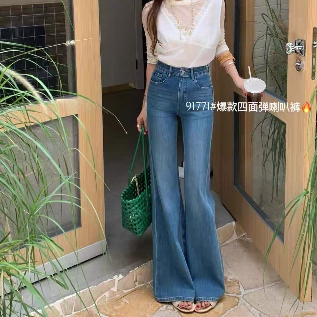 【デニム】 デニムパンツ レディース きれいめ 春 夏 秋 冬 20代 30代 40代 ジーパン パンツ フレア パンツ ワイドパンツ ハイウエスト ネイビー 青 S M L XL