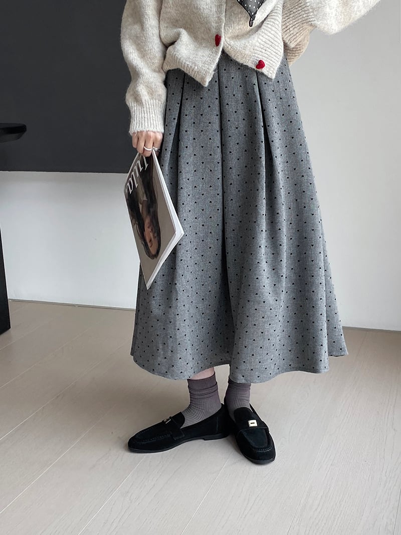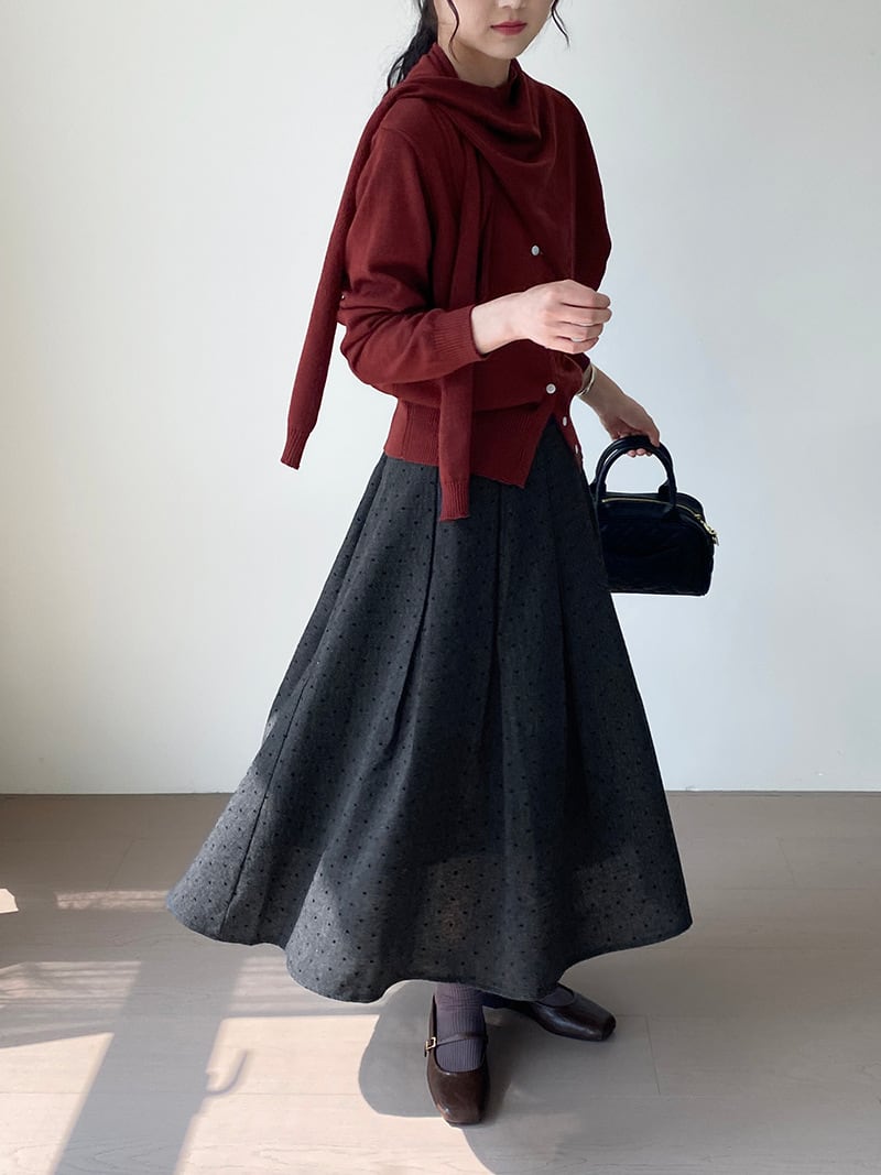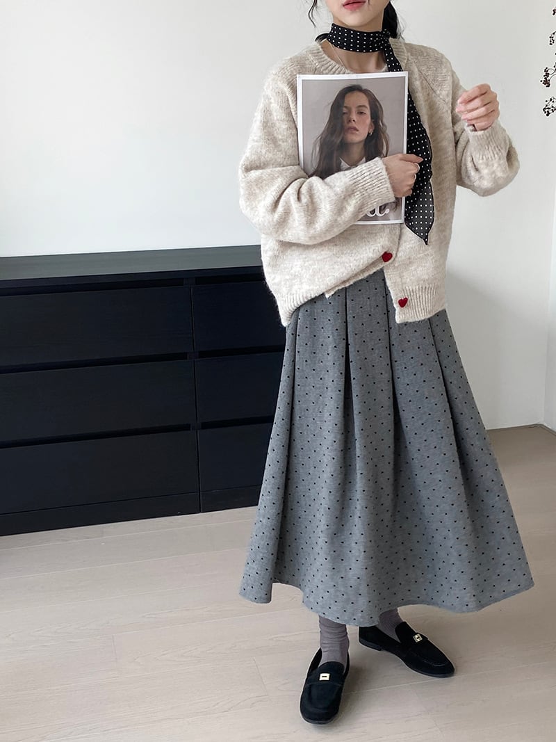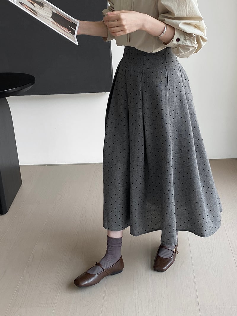 大人可愛いドット柄のプリーツスカート。