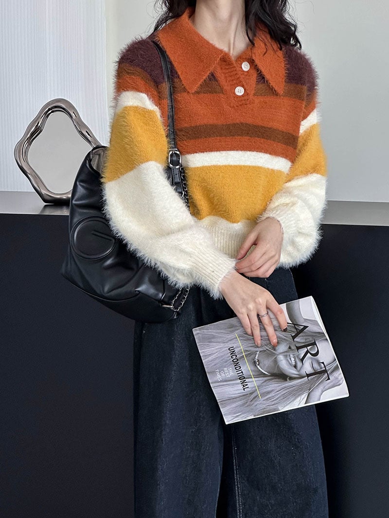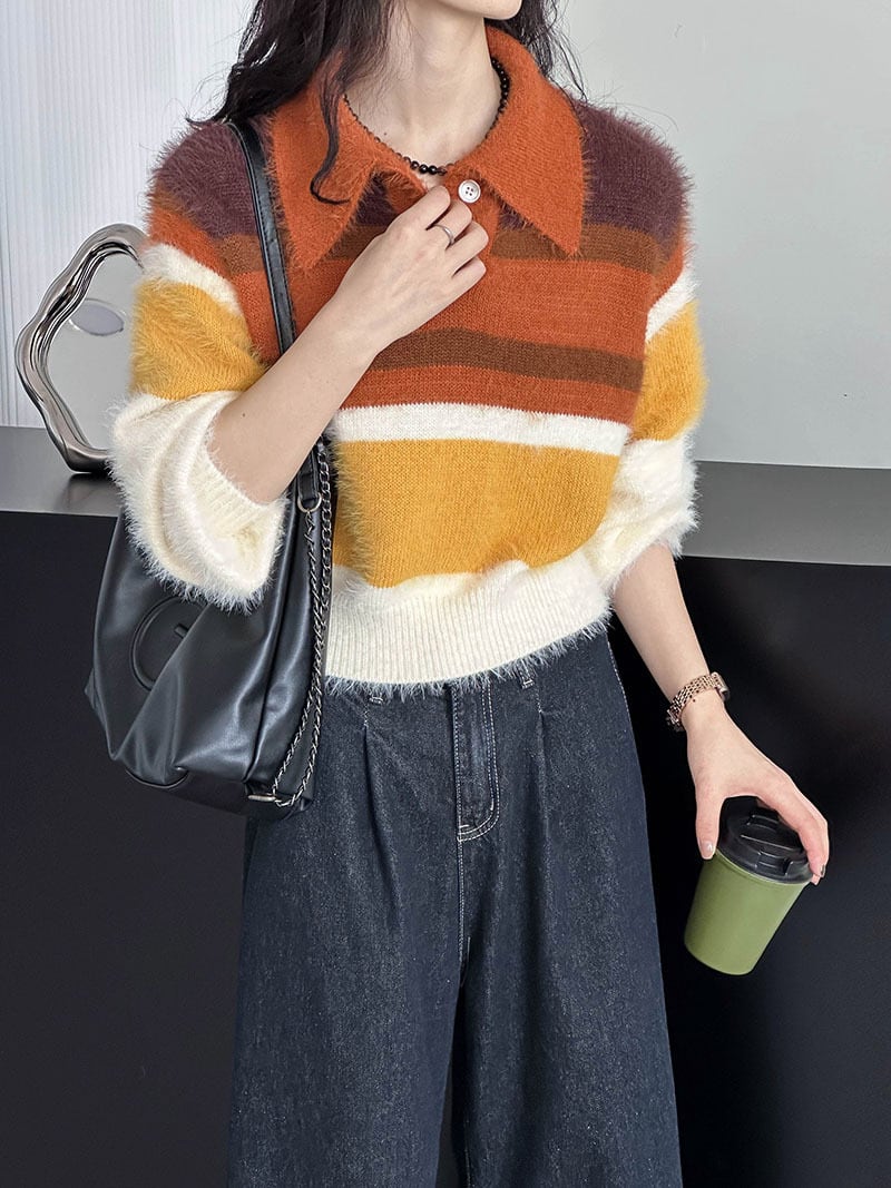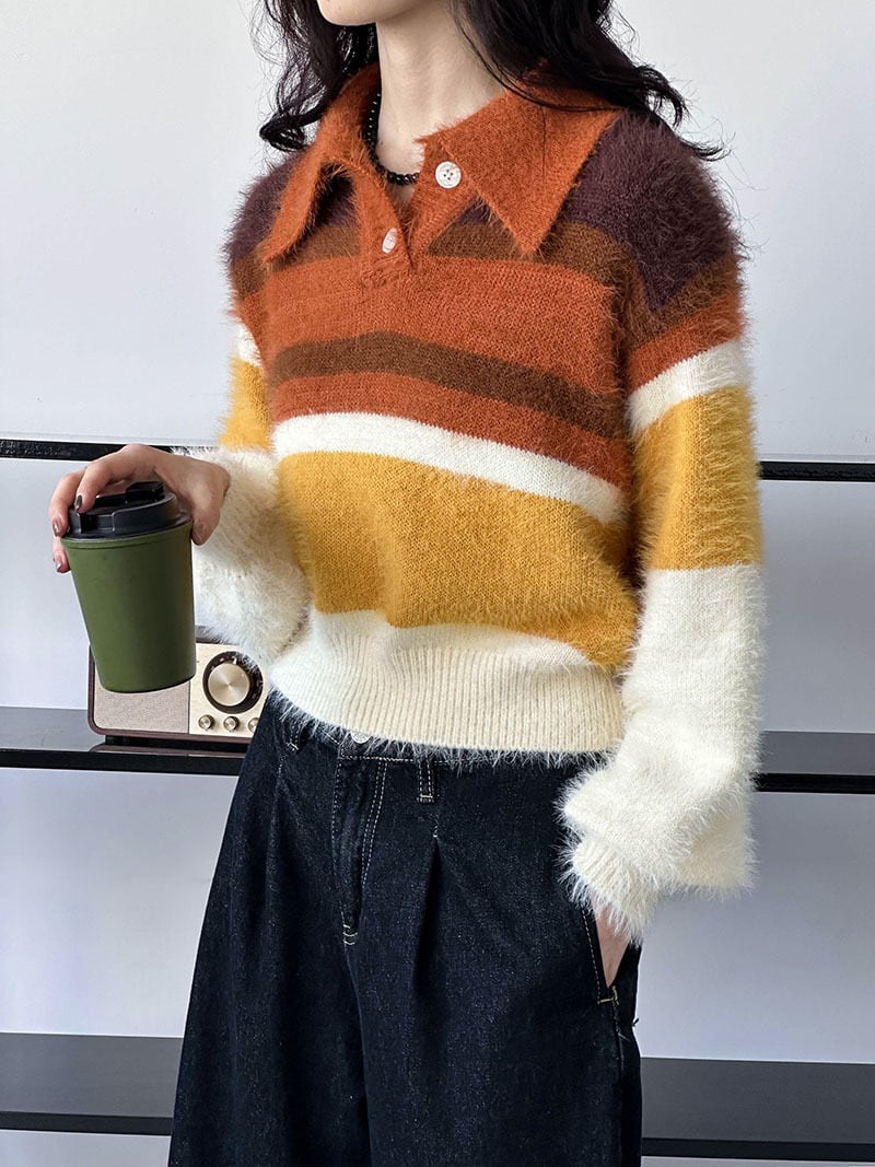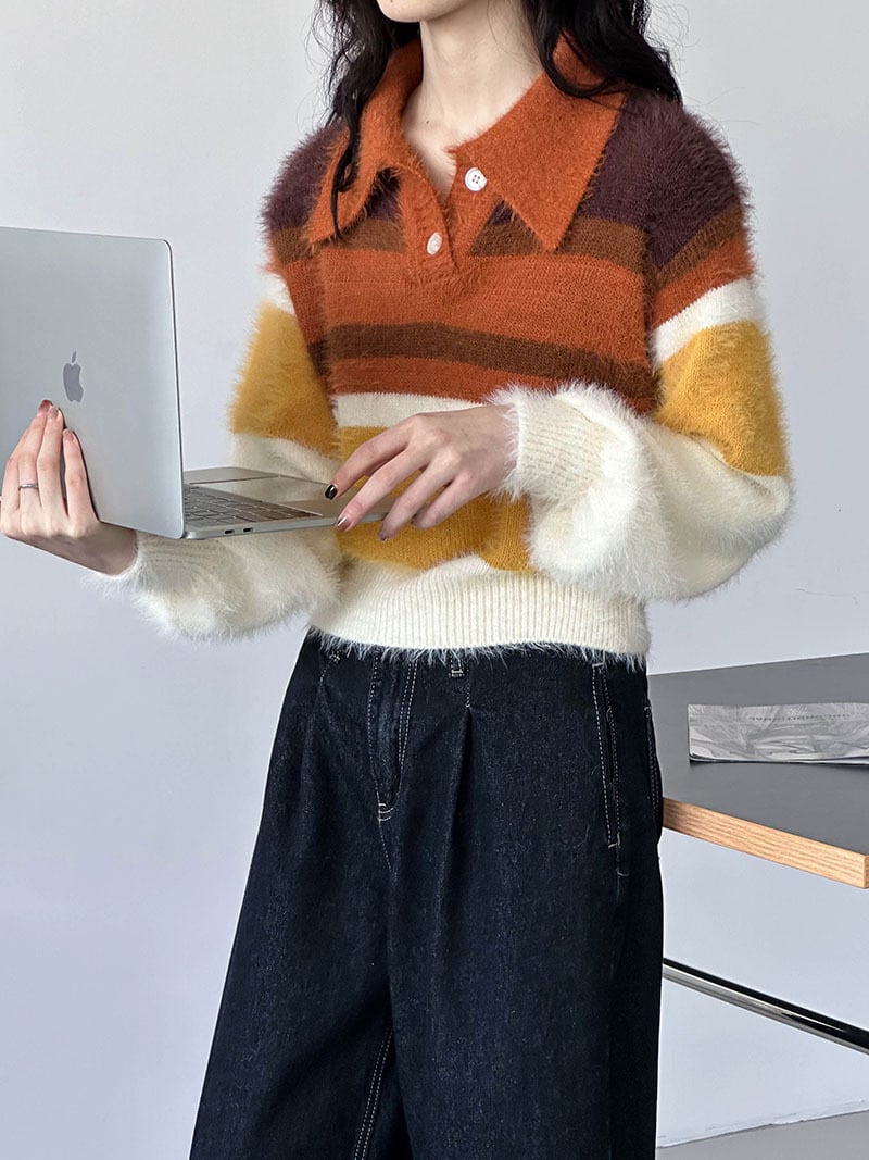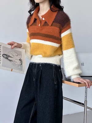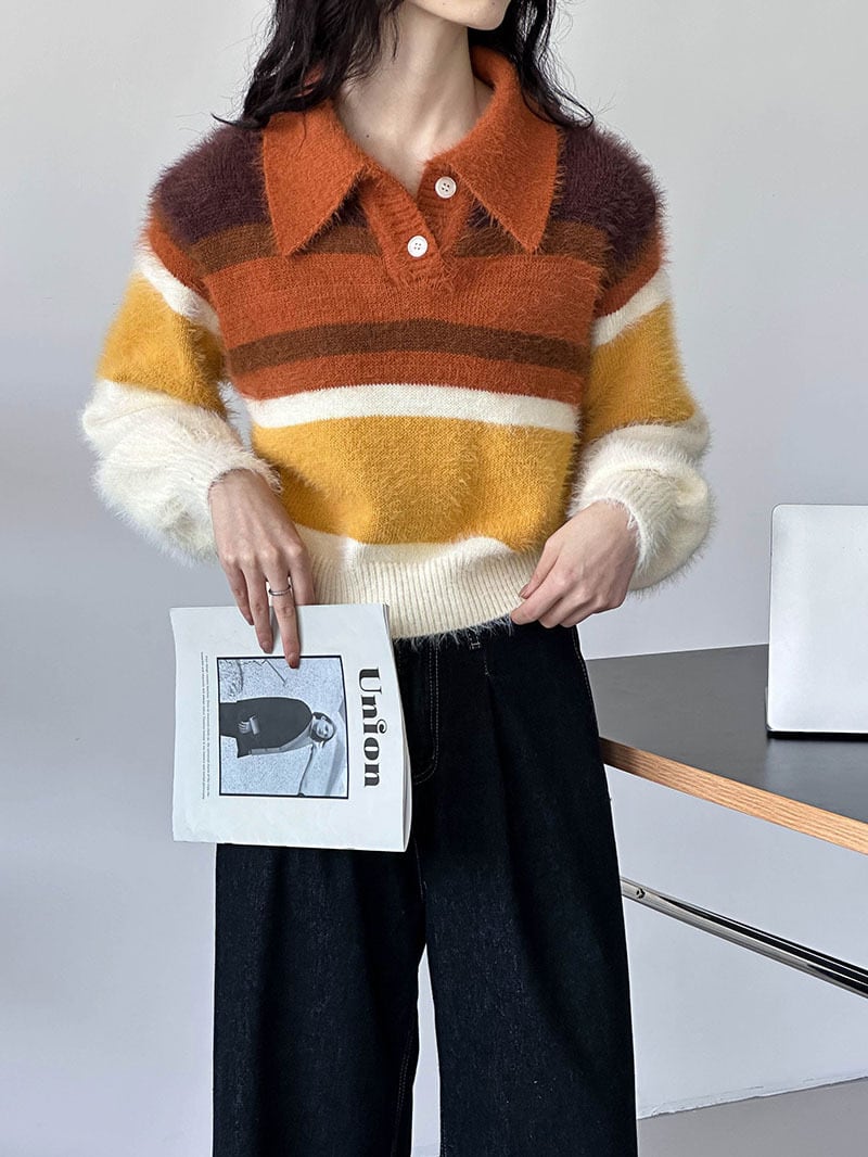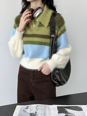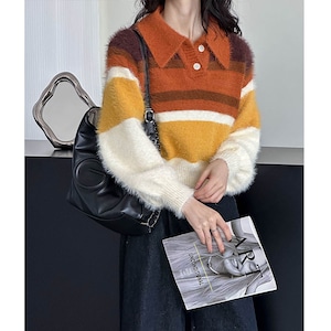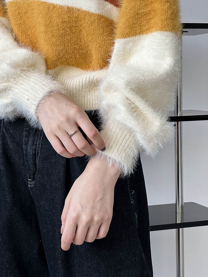 大人可愛いマルチカラーのシャギーニット。