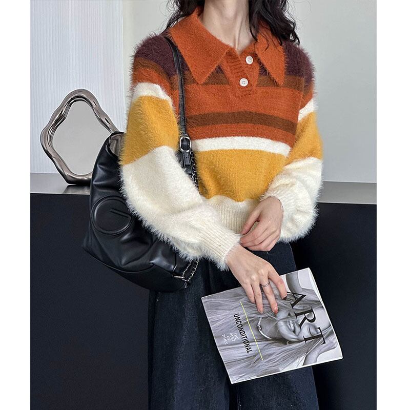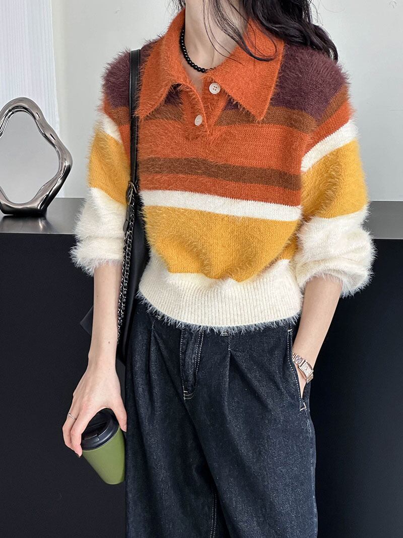 【ニット】 ニット セーター レディース おしゃれ きれいめ かわいい 韓国 トップス 長袖 20代 30代 40代 春 秋 冬 マルチカラー オレンジ グリーン 緑