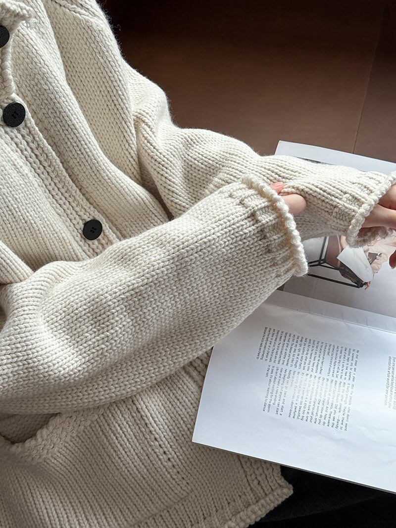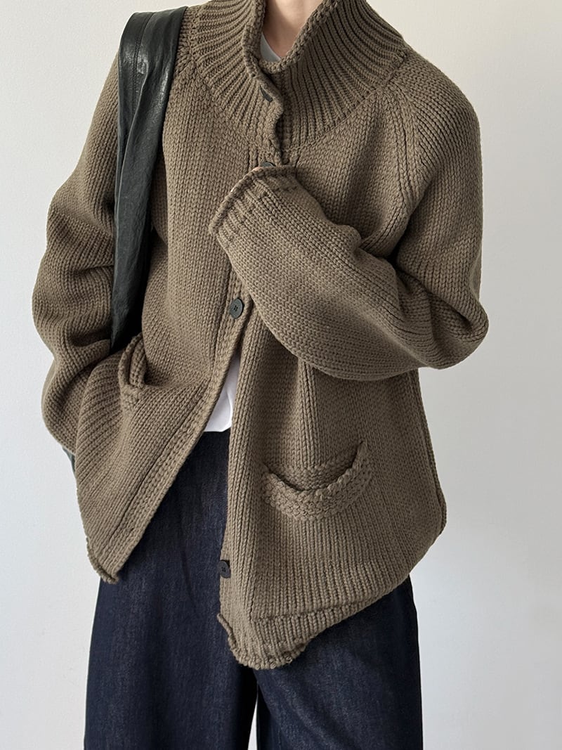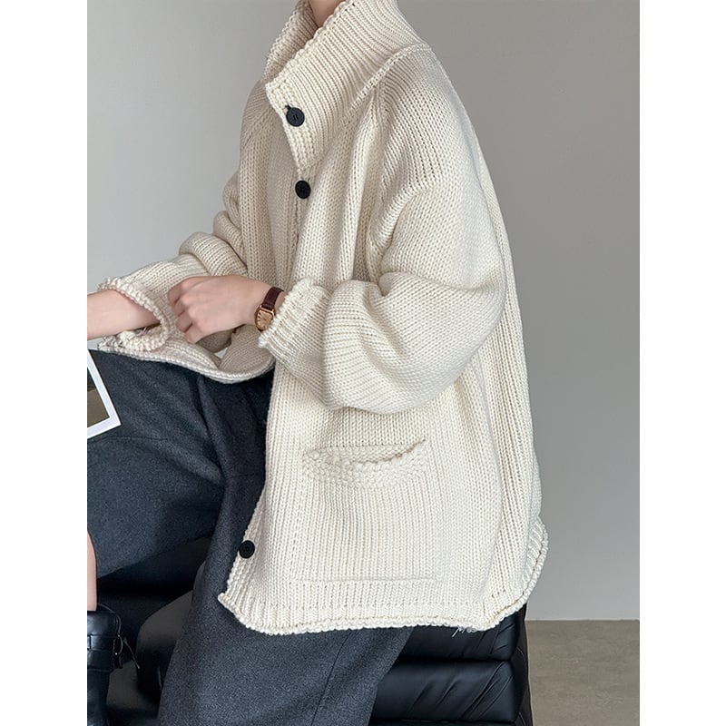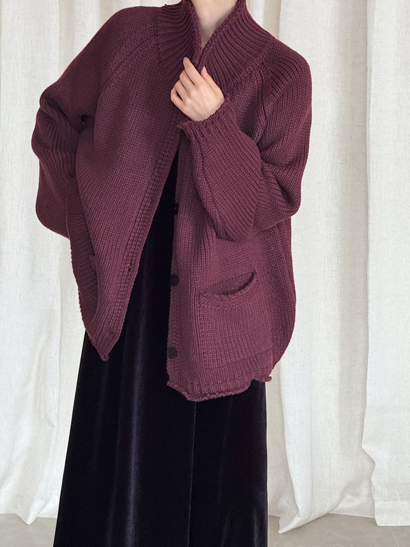 大人可愛いスタンドカラーのカーディガン。