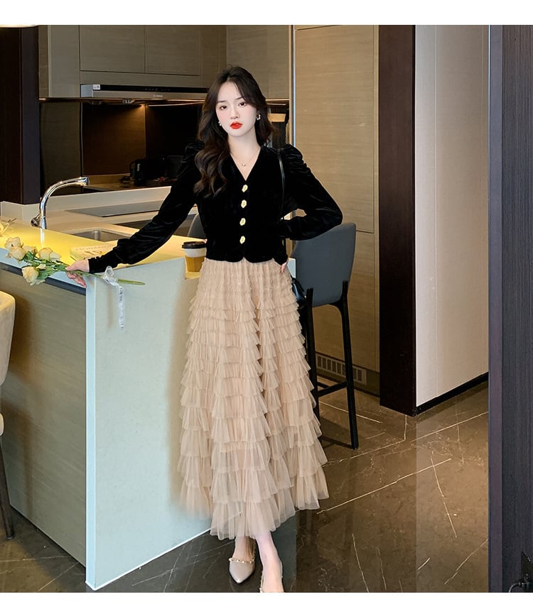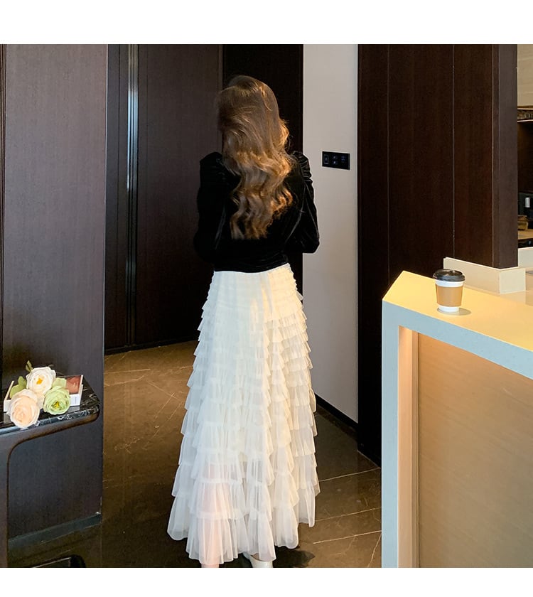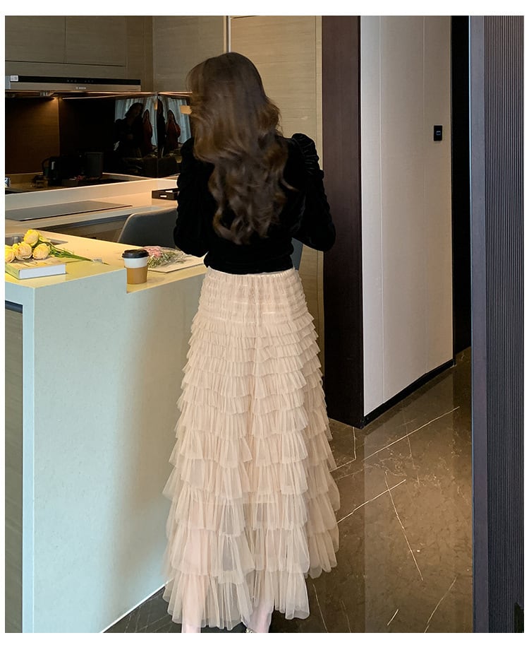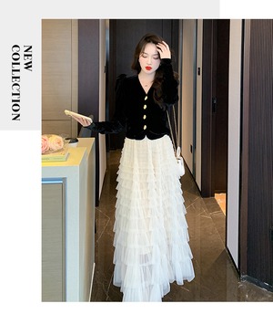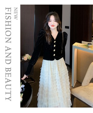 上半身はコンパクトに下半身はふんわりとaラインシルエットでメリハリの効いたラインに。