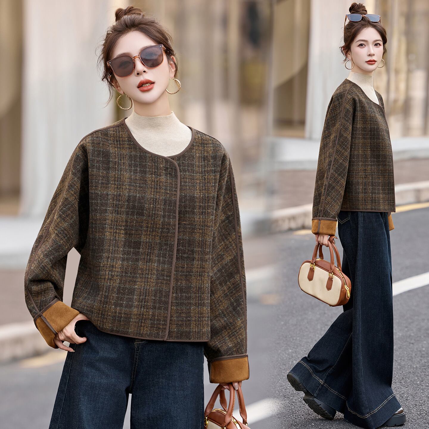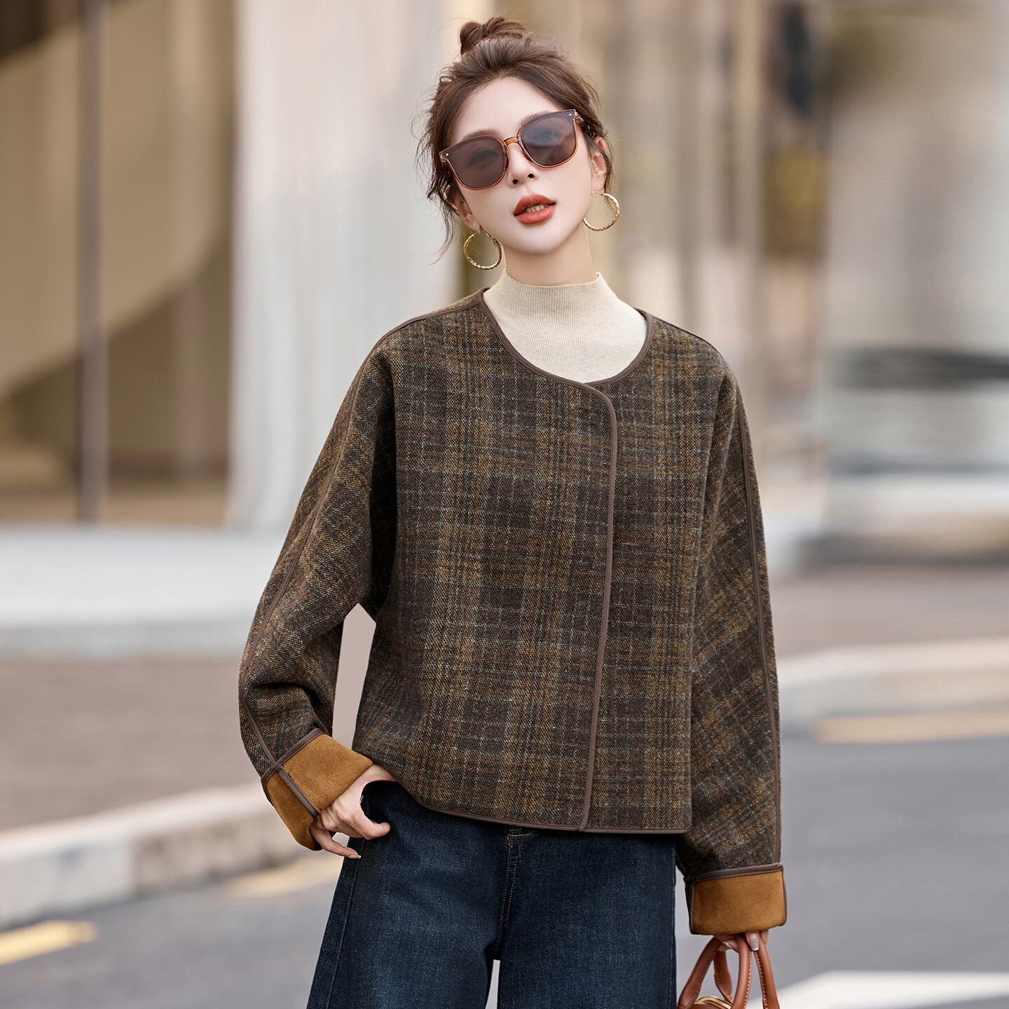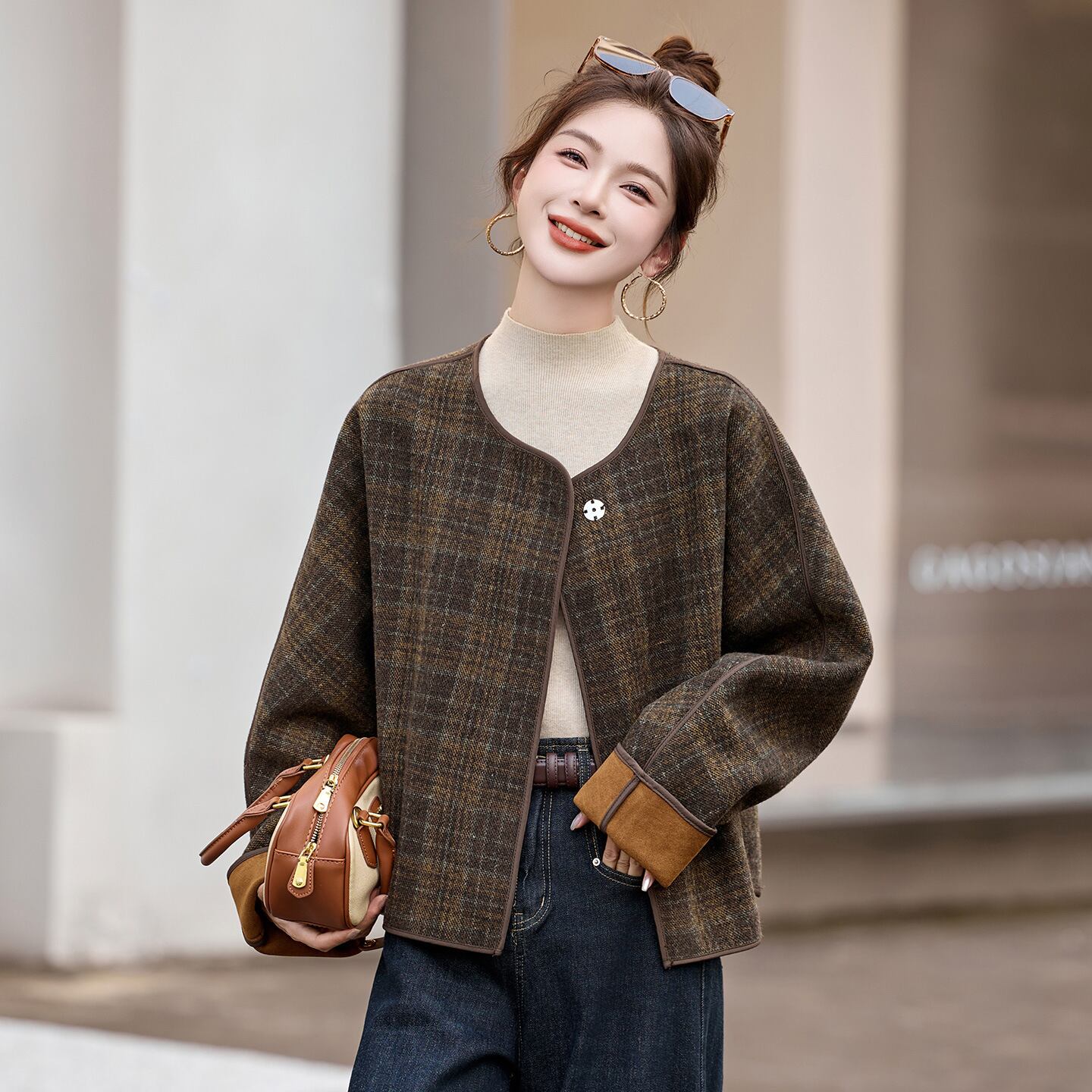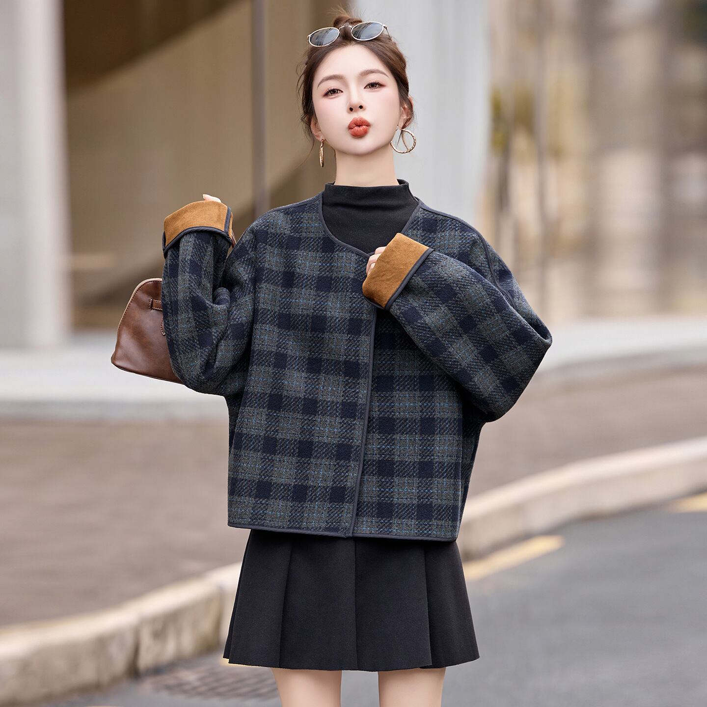 大人可愛いショート丈のシンプルなチェック柄コート。