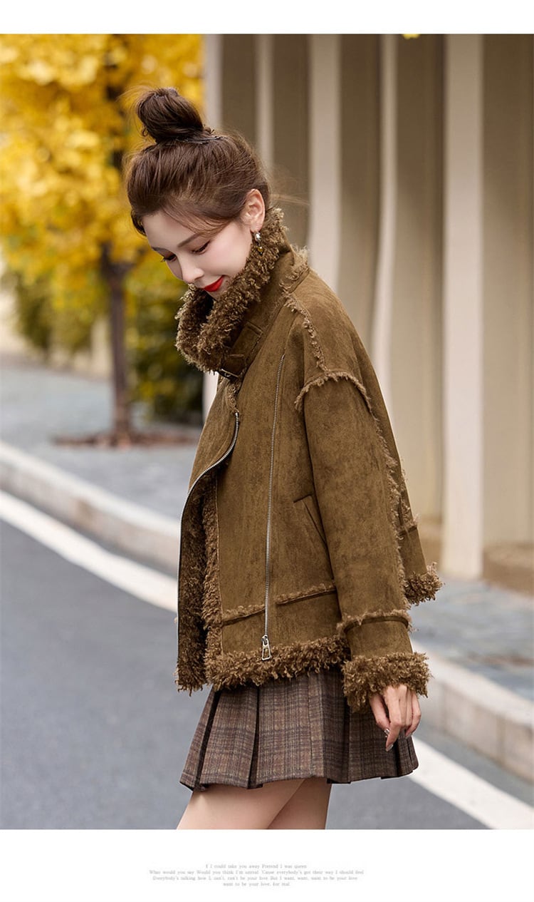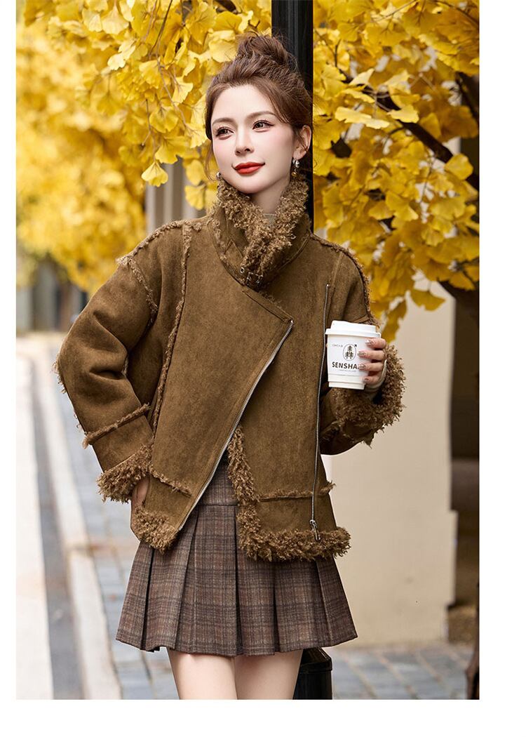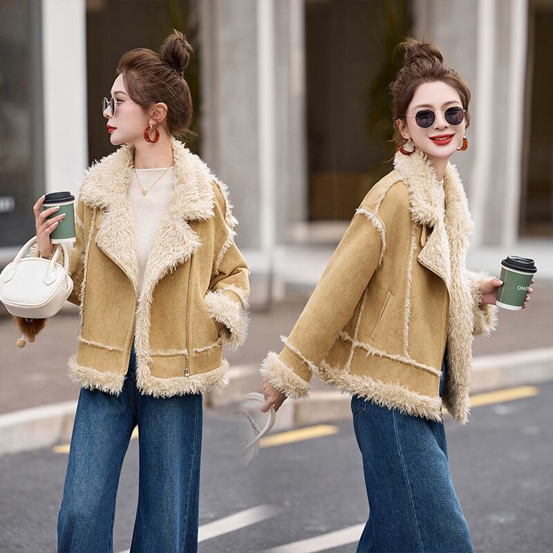 【コート】 ムートンコート レディース きれいめ アウター キャメル ショート 秋 冬 20代 30代 40代 可愛い 韓国 ファーコート カジュアル ブラウン 茶色 イエロー グリーン 緑 M L XL