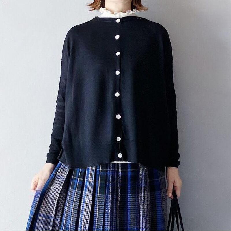 大人可愛いカーディガン+プリーツスカートのセットアップ。