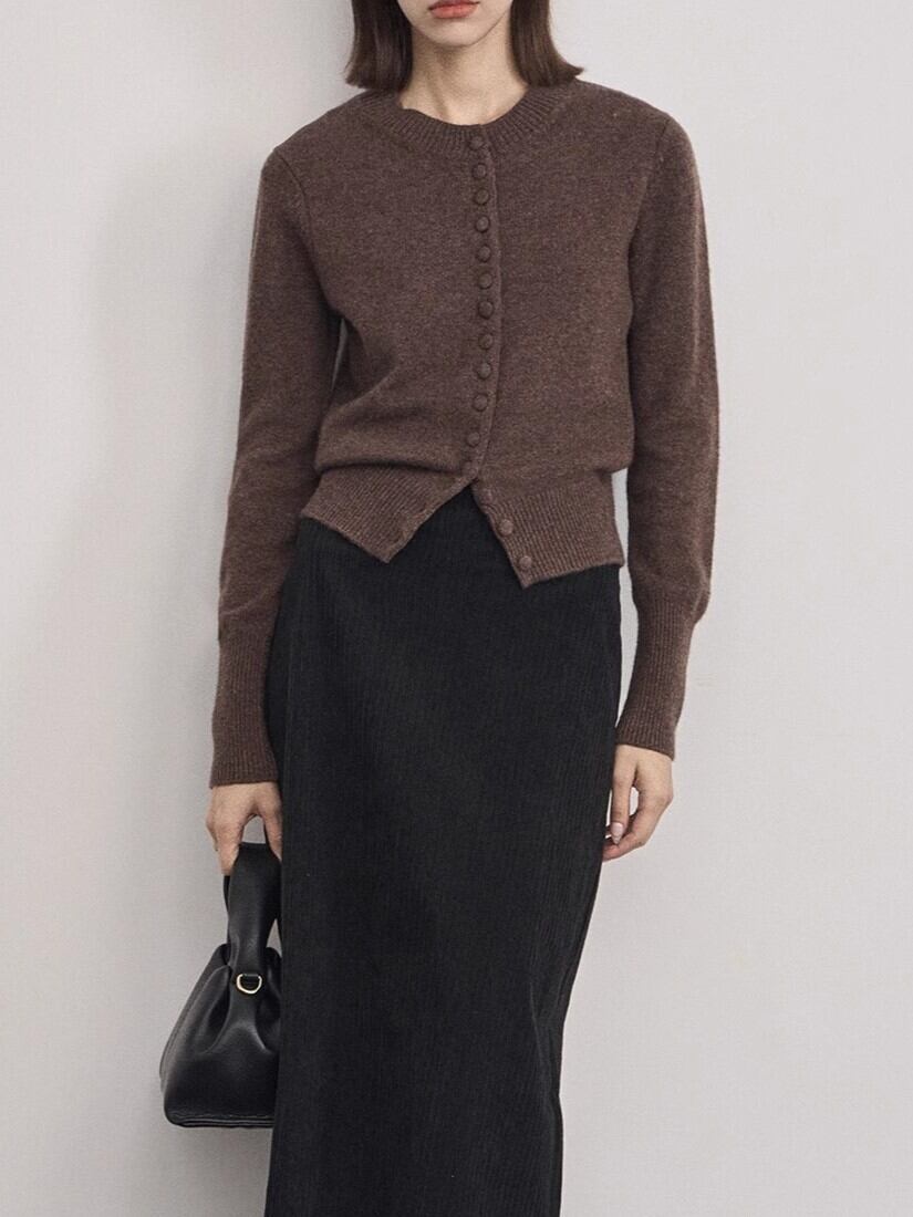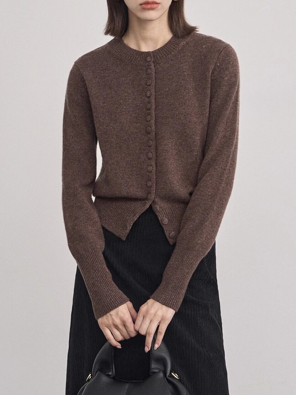 【カーディガン】 カーディガン レディース おしゃれ 韓国 春 秋 冬 20代 30代 40代 ニット カーディガンショート丈 長袖 無地 トップス ネイビー青 ブラウン 茶色