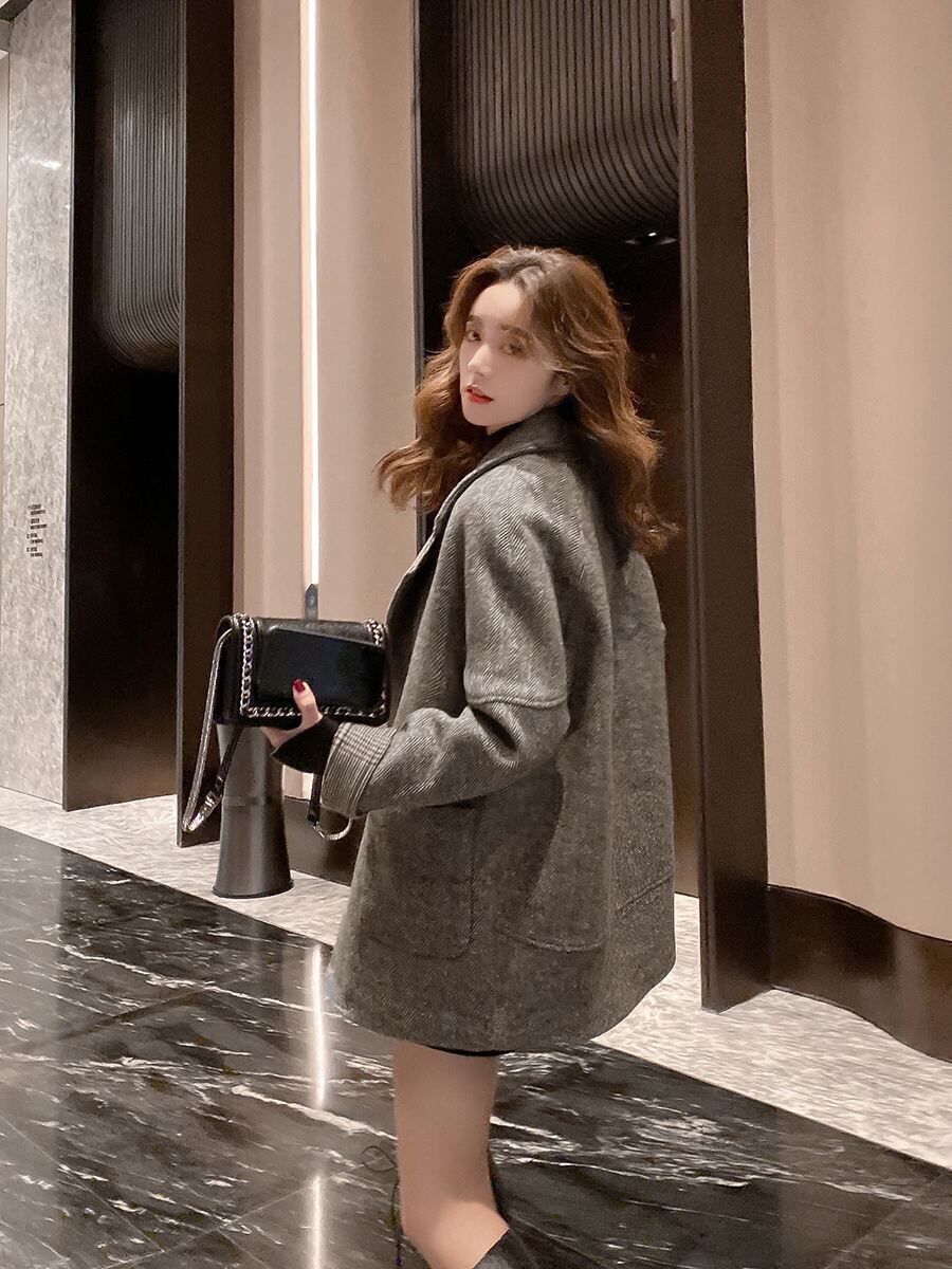 大人可愛いシンプルなヘリンボーンのチェスターコート。