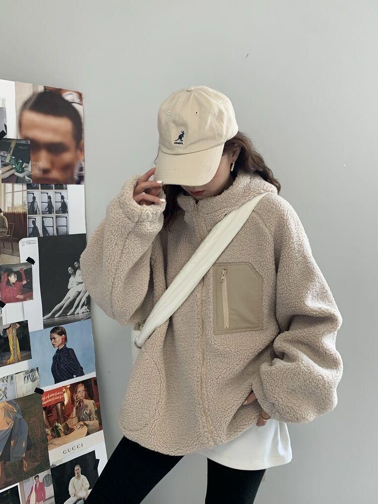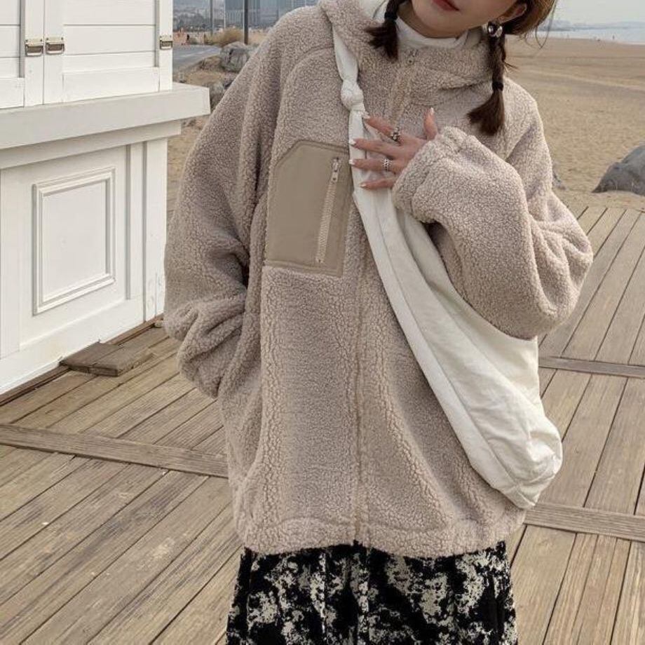 大人可愛いフード付きのボアコート。