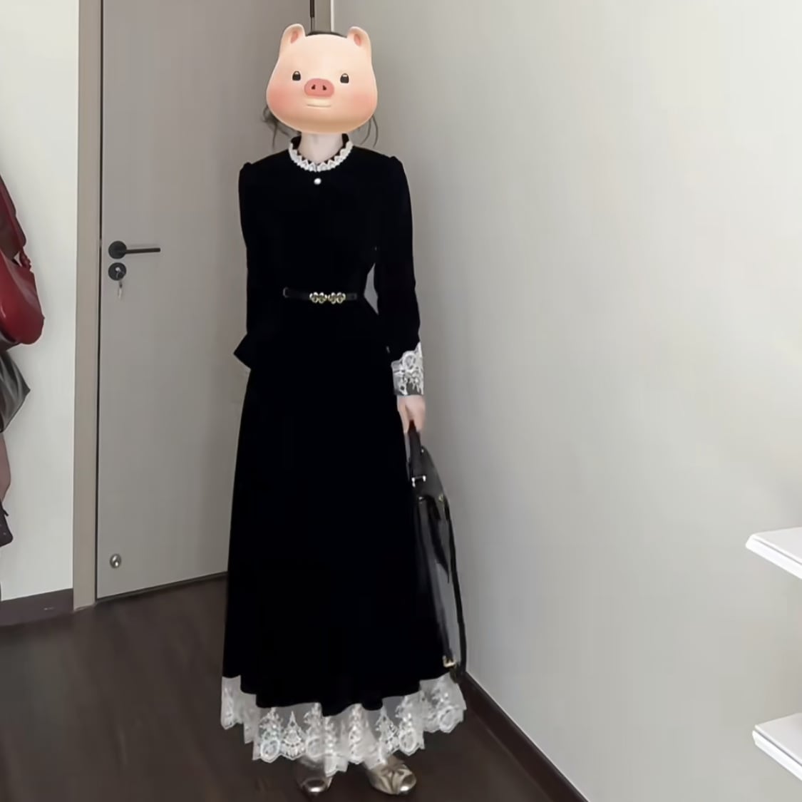 お首とお袖と裾のレース使いが女性らしくフェミニンな印象に。