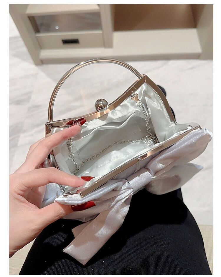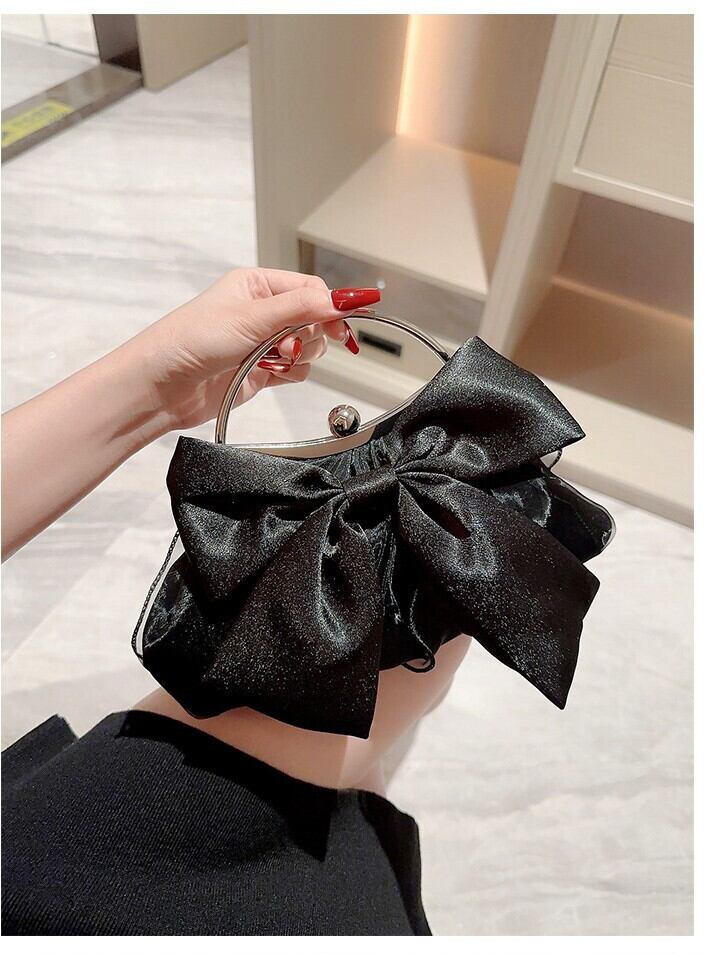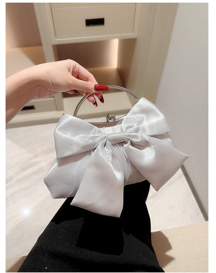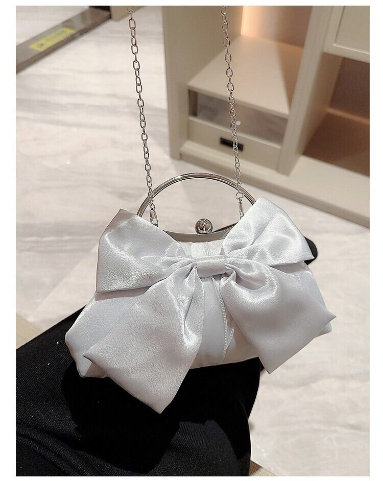 ちょこんと付いたリボンが大人可愛いパーティーバッグ。
