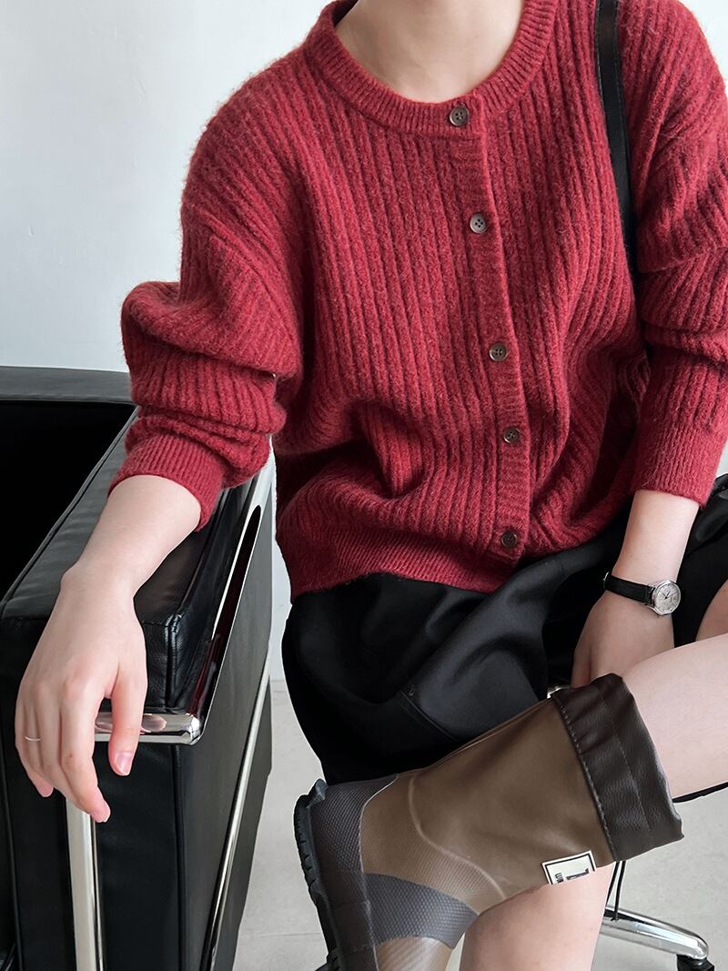 【カーディガン】 カーディガン レディース おしゃれ 韓国 春 秋 冬 20代 30代 40代 ニット カーディガンショート丈 長袖 トップス レッド 赤 ベージュ ライトグレー ダークグレー