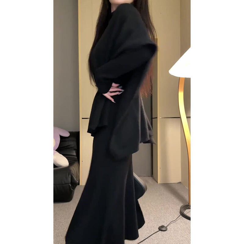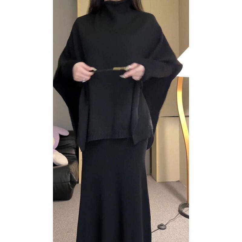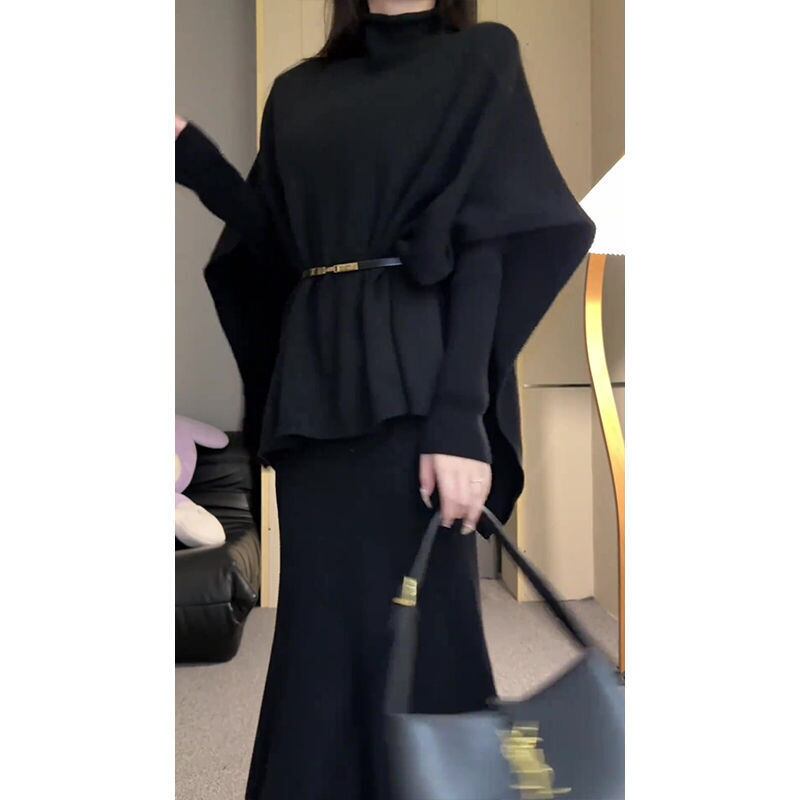 【セットアップ】 セットアップ レディース おしゃれ ママ ワンピース ポンチョ コート アウター 秋 冬 20代 30代 40代 きれいめ ブラック 黒 S M L XL