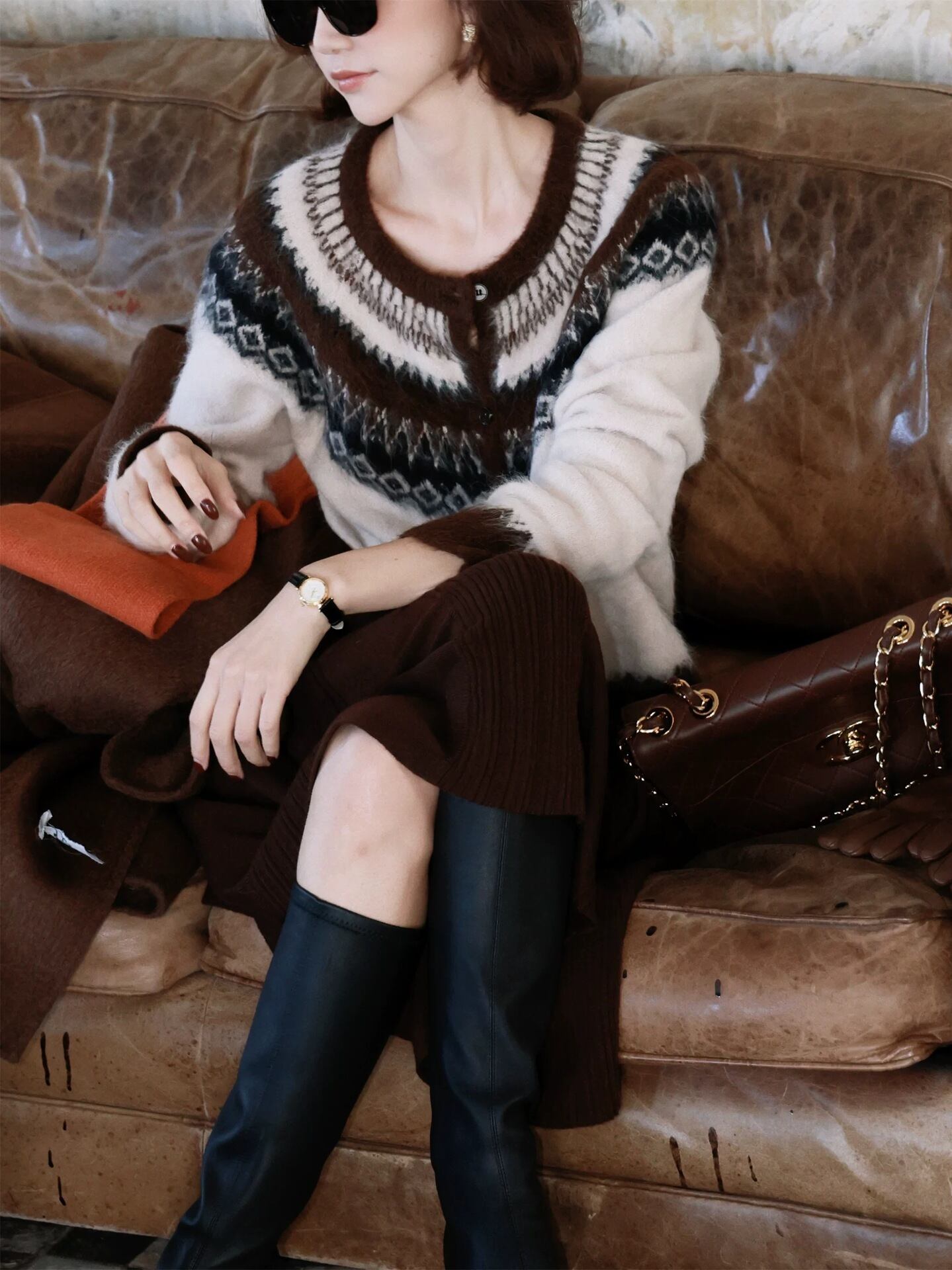 【カーディガン】 カーディガン レディース おしゃれ 韓国 春 秋 冬 20代 30代 40代 ニット カーディガン 長袖 トップス ノルディック ホワイト 白
