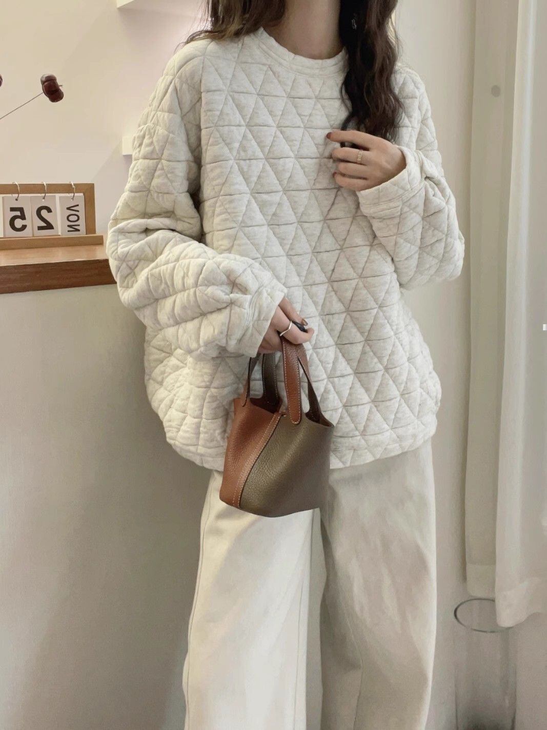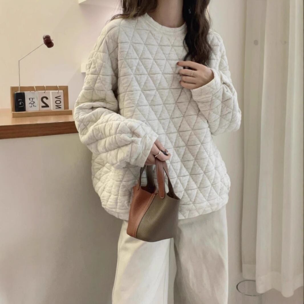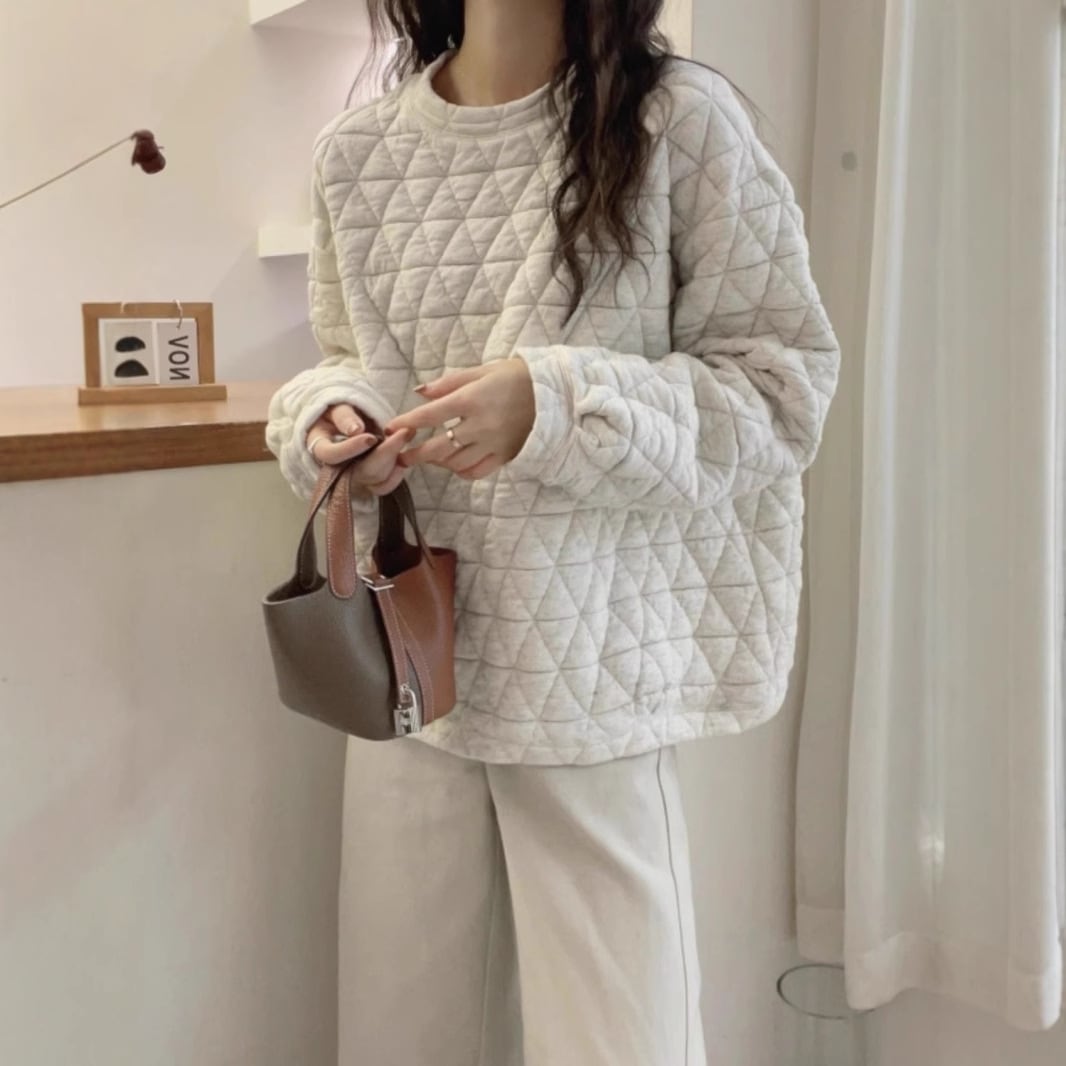 【カットソー】 大きいサイズ カットソー レディース キルティング カットソー 春 秋 冬 20代 30代 40代 長袖 レディース カットソー tシャツ カットソー トップス 大人 可愛い きれいめ ホワイト 白 グレー S M L XL 2XL 3XL