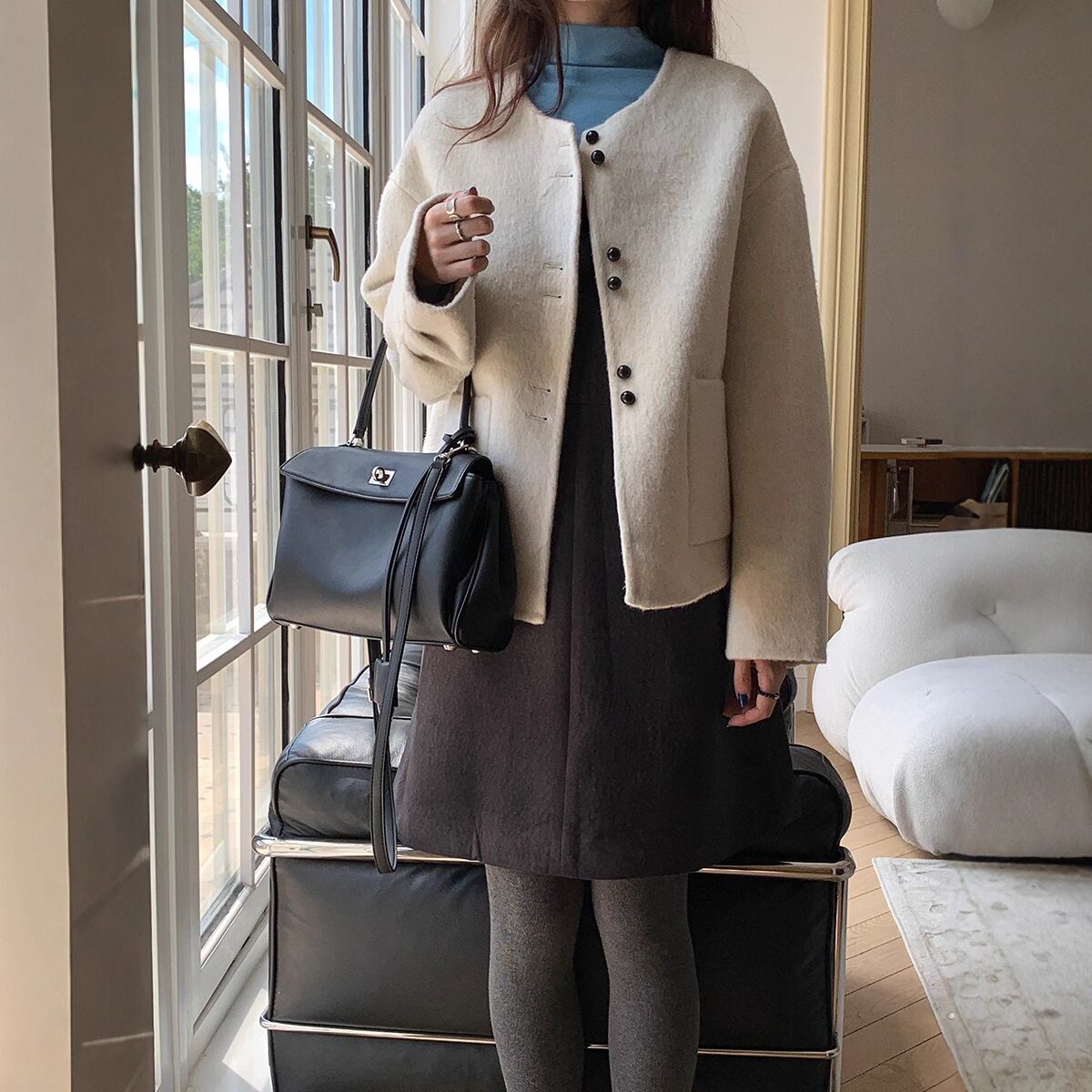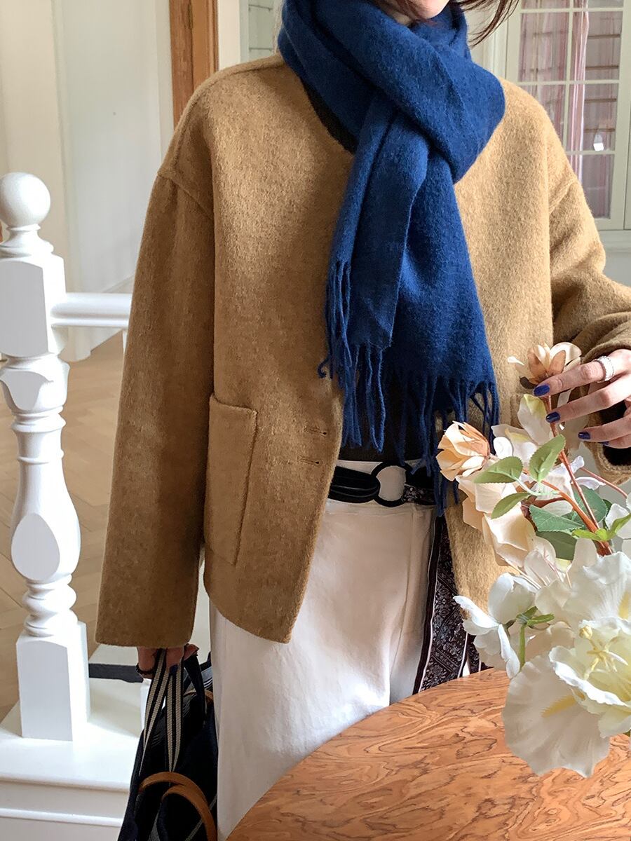 ショート丈ながらウール素材であたたかさも保証付き。