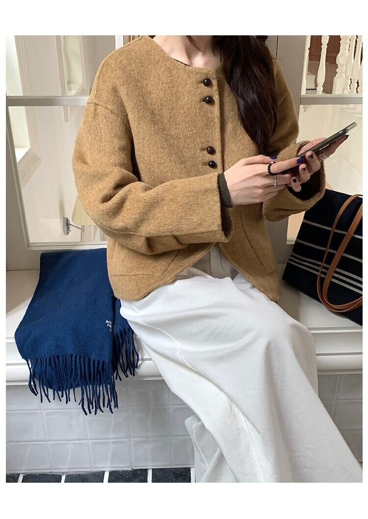 大人可愛いノーカラージャケットコート。