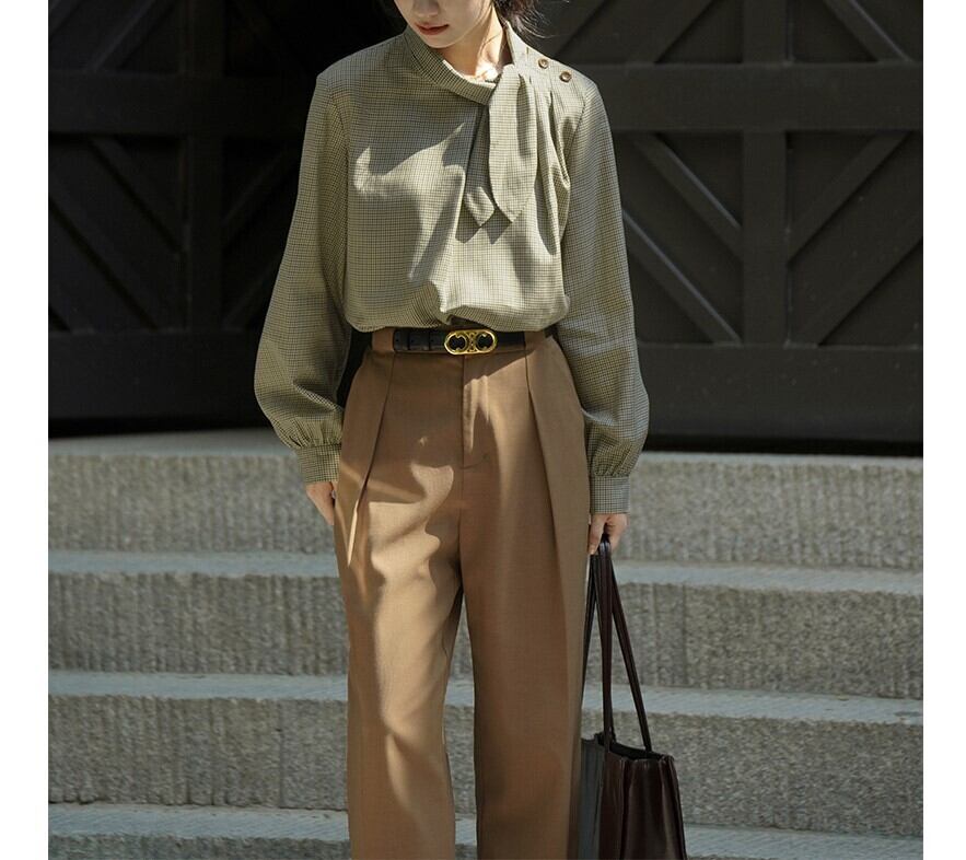 大人可愛くレトロなタイカラーのチェック柄ブラウス。