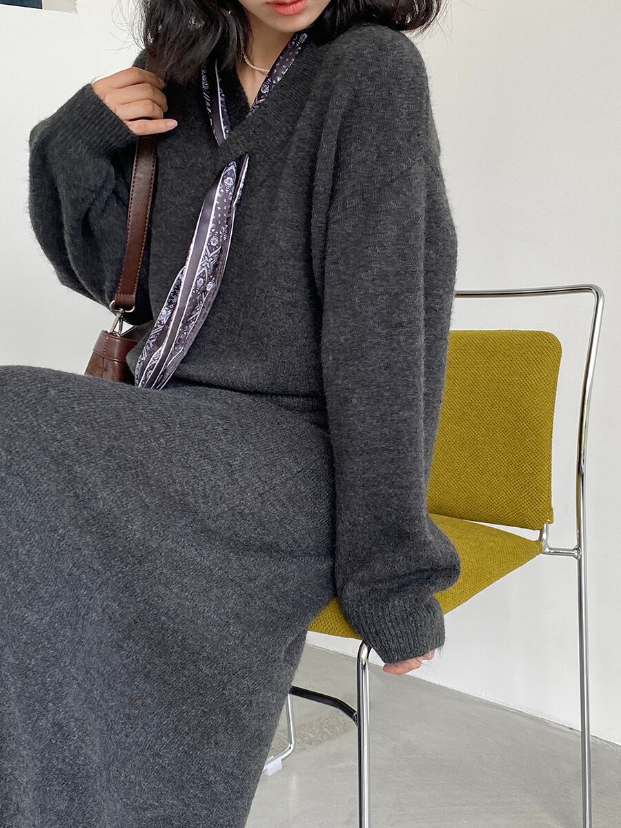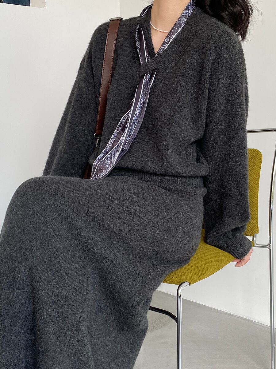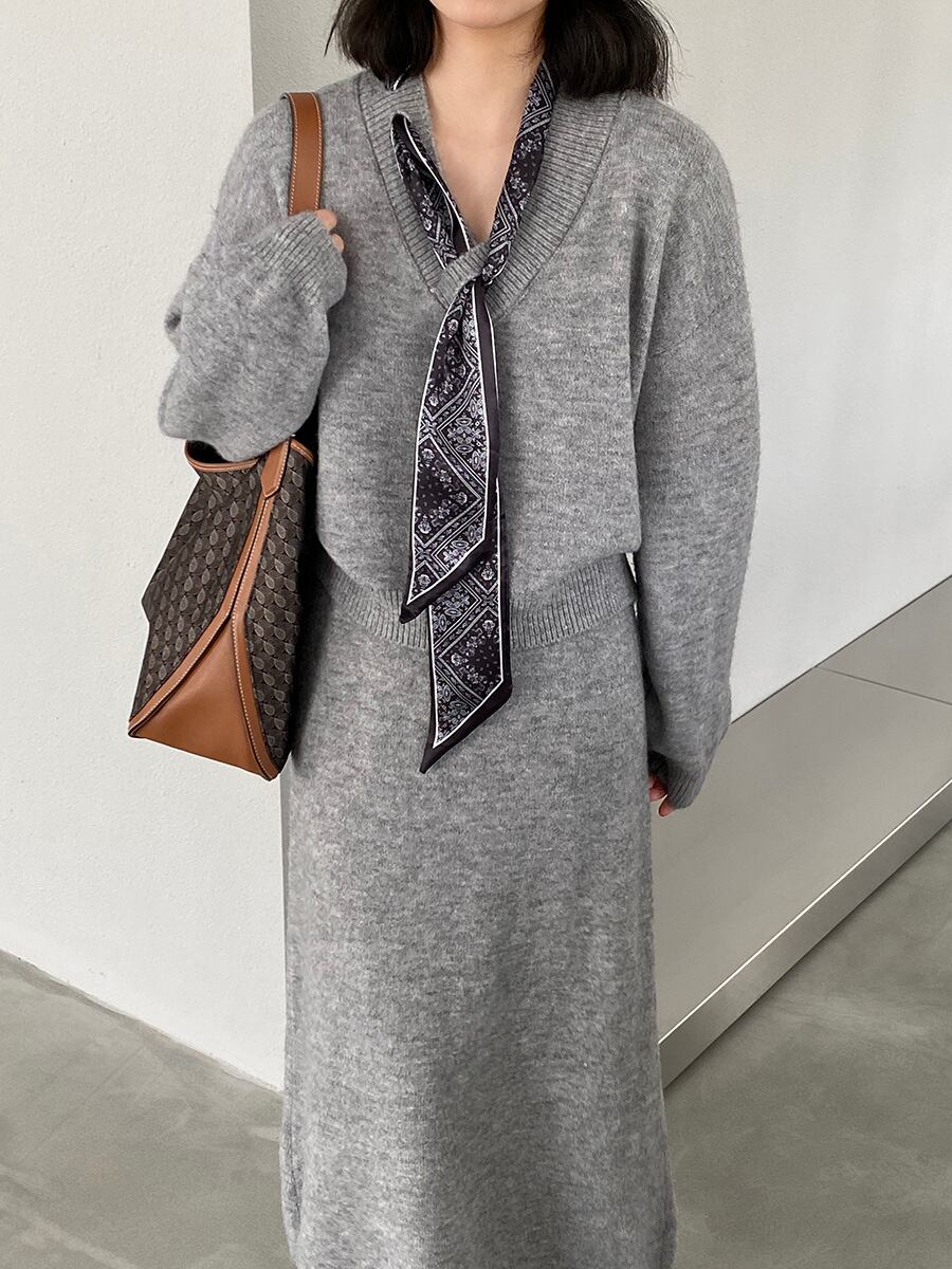 【セットアップ】 セットアップ レディース おしゃれ ママ スカート ニット トップス 秋 冬 20代 30代 40代 きれいめ ダークグレー ライトグレー