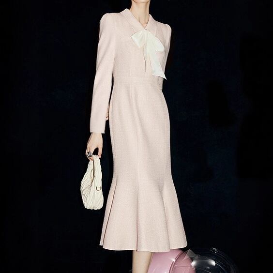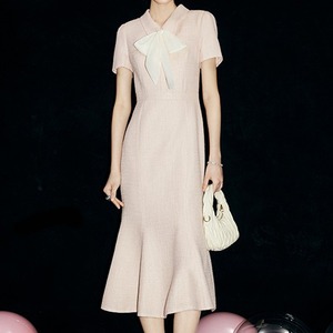 淡いピンクカラーと胸のボウタイが清楚さをプラス。