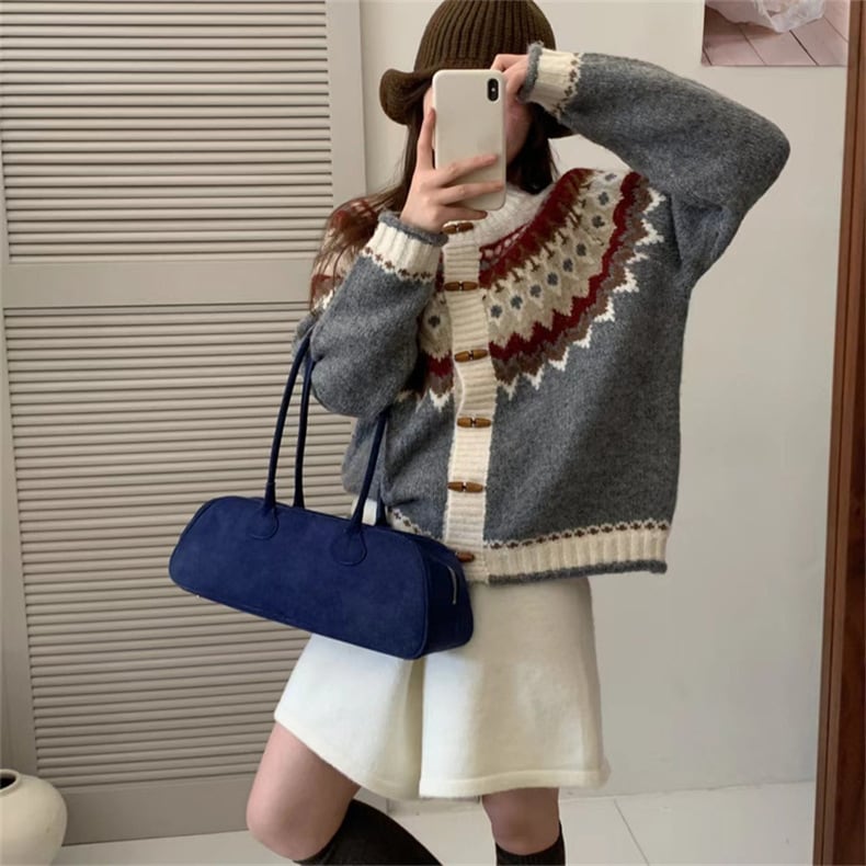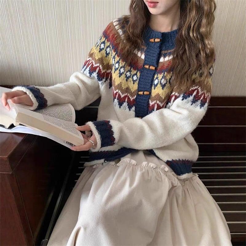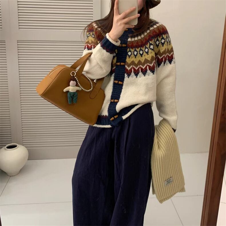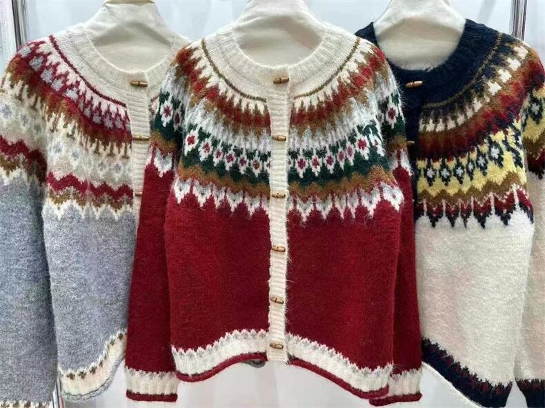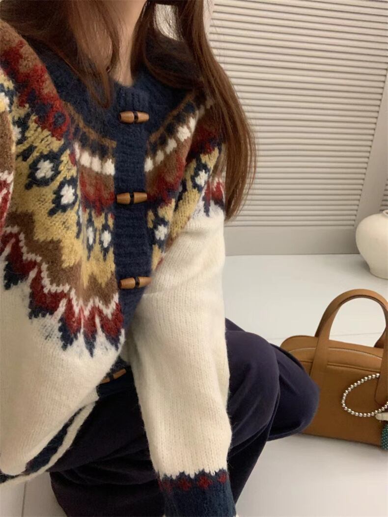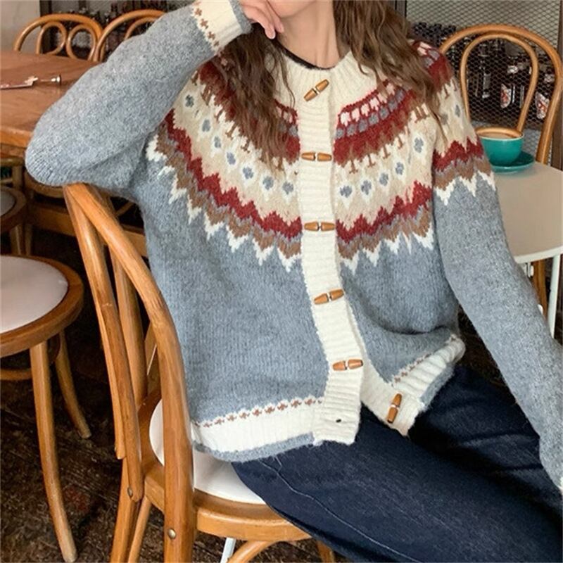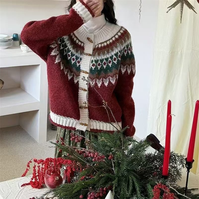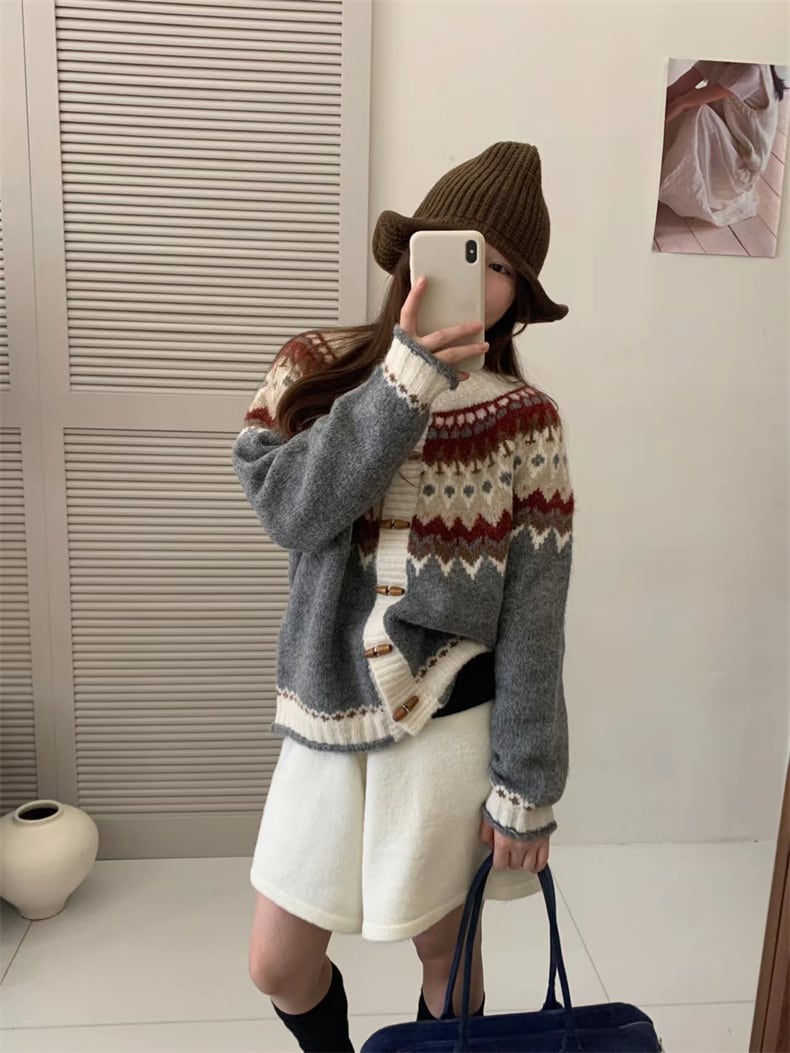 【カーディガン】 カーディガン レディース おしゃれ 韓国 春 秋 冬 20代 30代 40代 ニット カーディガン 長袖 トップス ノルディック ホワイト 白 グレー レッド 赤