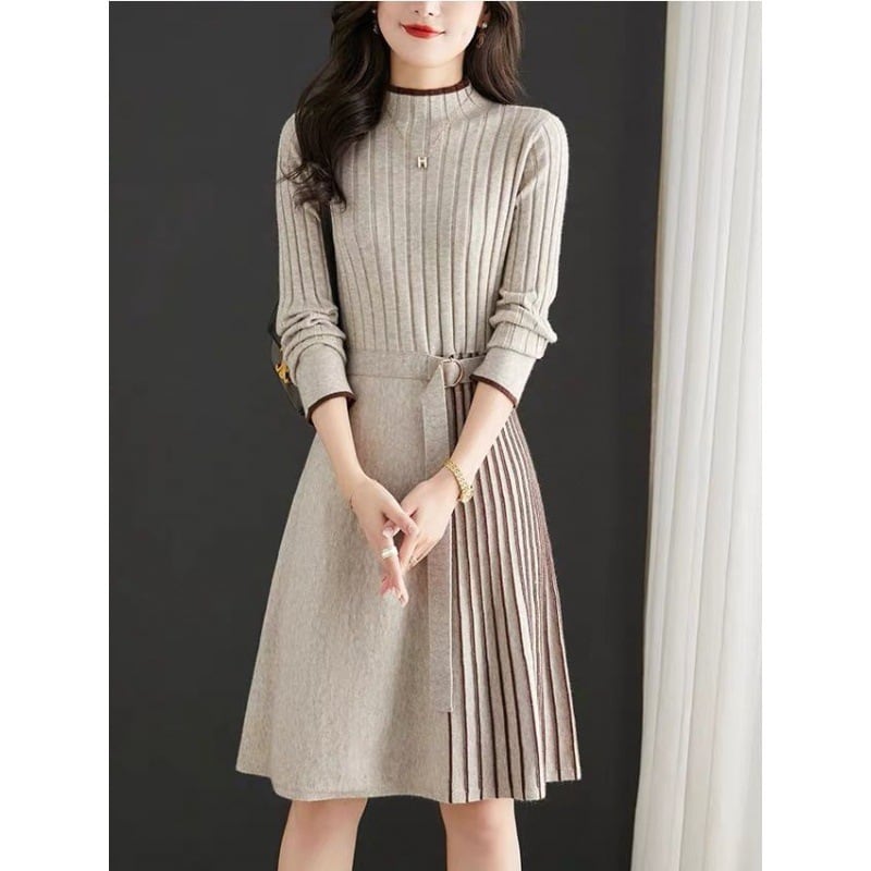 大人の可愛らしさを演出するリブニットプリーツワンピース。